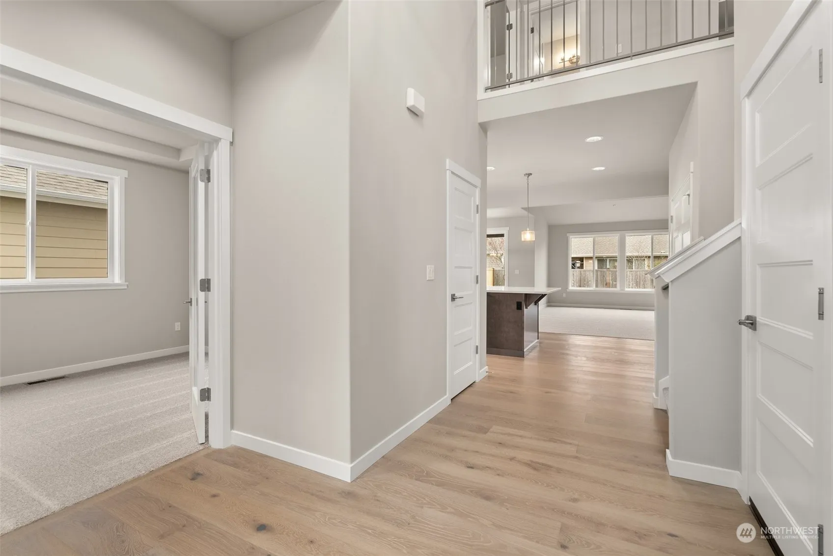 Rob Rice Homes popular plan The Spruce, open-concept layout & primary bed on the main level. 4 beds 3 baths +bonus! The den can be an office or used as another bedroom. Contemporary details & lots of natural light! Modern kitchen w/Quartz kitchen counters as well as bathrooms & laundry. Charcoal-stain shaker style Maple cabinetry throughout w/full extension guides & soft closure drawers. 5-piece primary bath w/tile flooring. Fully landscaped front & back w/privacy fencing. Covered back porch for additional outdoor living space. Includes solar panels, a high-efficiency 5-stage heat pump w/wifi thermostat providing both heat & air-conditioning & an electric hybrid water heater! Move-In-Ready home, must see!