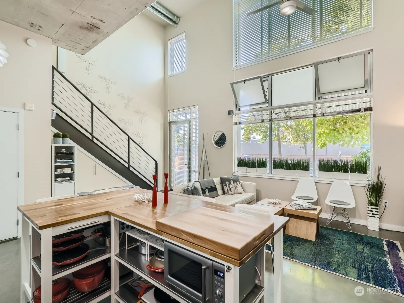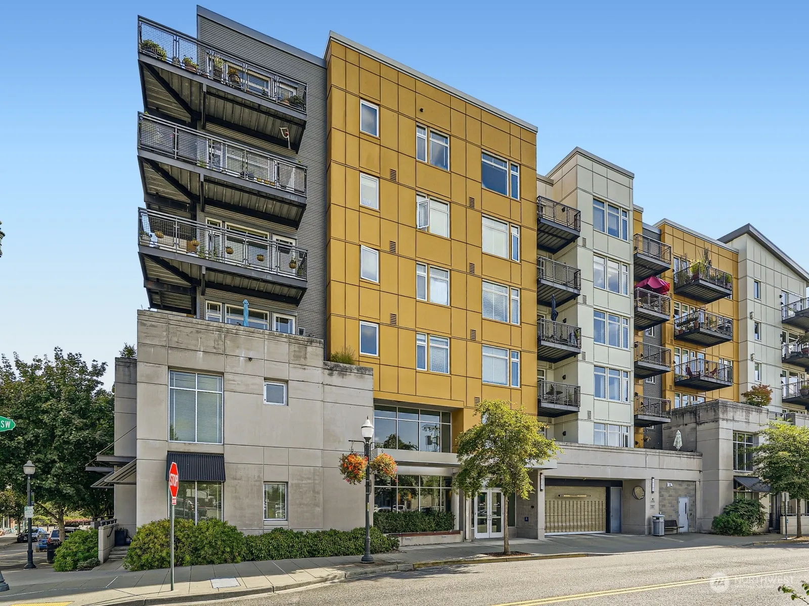 Effortless living in a well run building with lovely community amenities! Party room ~ grills ~ gardens ~ sunset fire pit ~ rooftop gardens, and a gym! This LOFT has a wonderfully large floorplan you will immediately appreciate. Main entry directly off the street OR 50 ft from your secure parked car via the garage. UPGRADED Kitchen with Quartz and custom island. Open layout and CLEVER custom under-stair storage, and a 1/2 bath. Upstairs is exceptional with sleeping quarters, flex space, laundry room, full lux bath plus a large custom walk-in closet. Rare street level west facing townhouse style 2 story condo steps to all Downtown Burien has to offer! Within 2 blocks enjoy trendy restaurants and shops and Burien Transit Center