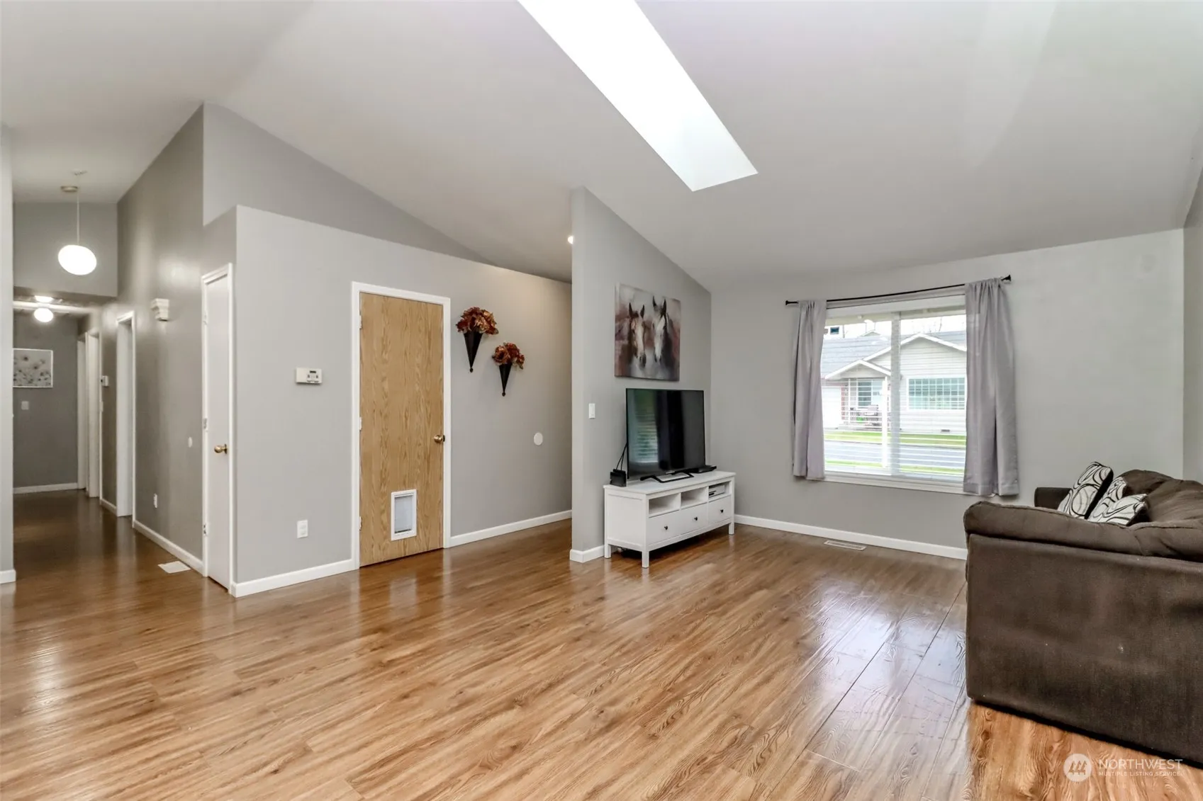 Welcome to this beautiful open-concept rambler situated on a large 1/3 acre lot. This home offers easy living with its spacious layout and modern features. Remodeled kitchen offers: pantry, breakfast bar, SS appliances, garden window, quartz countertop, and lots of cabinets. Home has 3 bedrooms 2 baths, vaulted ceiling, skylights, central A/C, and NO HOA. Fully fenced backyard with shed. Perfect patio and fire pit for outdoor entertaining. 2-Car Oversized Garage, W/ RV Parking with Power Hook Up beside the Garage. Great location! Close to schools and shopping centers. If you are looking for move-in ready; this home is for YOU!