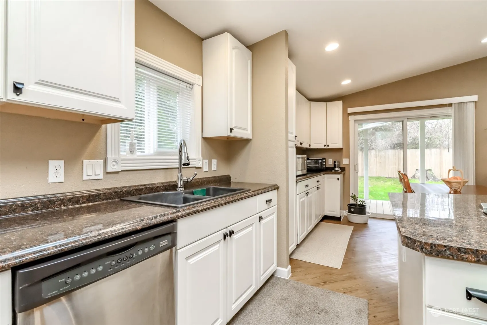 Escape to your own oasis on over 1 acre of tranquility with this inviting 3 bed, 2 bath home. Revel in the privacy of a fully fenced yard, complete with a convenient sprinkler system, RV parking, & a large 2 car garage with breezeway to cater all your storage needs. Entertain effortlessly on the covered deck while enjoying the expansive outdoor space. Inside, discover modern comforts including laminate flooring, recessed lighting, and sleek stainless steel appliances. With fresh interior paint and a cozy heat pump, every season is delightful. Embrace the joy of gardening in the dedicated space with flourishing fruit trees. Revel in the peace and privacy this property affords, making every day a retreat from the bustle of city life.