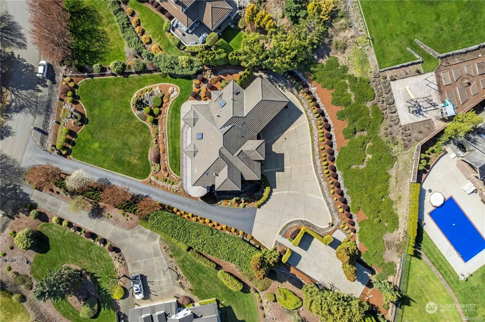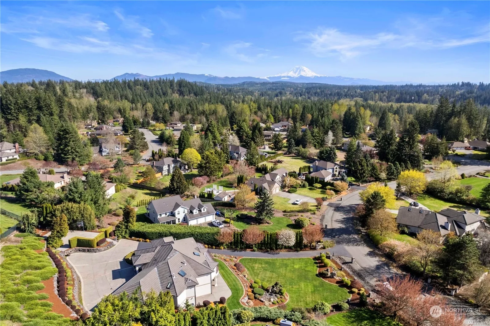 This luxurious real estate gem features 4 spacious bed(primary on main), 3.25 elegant bat. Large office spaces, a dedicated movie room for entertainment enthusiasts, open kitchen & living room, three-car garage, & much more .The property offers a picturesque view of Mt. Rainier & features a sports court for active living. Custom furniture pieces seamlessly integrate with the house, enhancing its charm. The meticulously designed prestige landscaping, complete w/ tasteful lighting, adds to the property’s curb appeal. All-new appliances ensure modern convenience for the lucky homeowners. Beautiful refinished hardwood flooring. New decking, AC, and furnace, and carpet. This residence is a true representaion of comfort, style, and functionality!