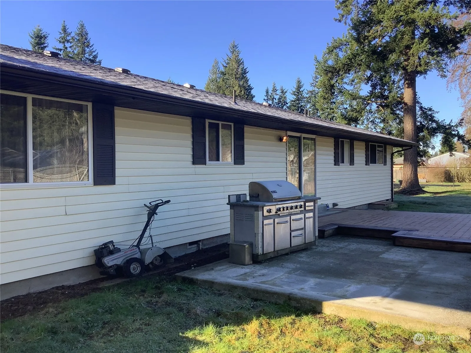 Tucked away on a cozy cul-de-sac, this brick front, with three vinyl sides home has excellent potential. Close to Arlington Airport trail and numerous services. Stores, jobs, easy freeway access. Home has updated kitchen new cabinets, countertops, and appliances. Floors in kitchen, hallways, living room, features bamboo for easy maintenance. One full bath one three quarter off largest of the three bedrooms. Newer furnace with heat pump and A/C, hot water tank, gutters with leaf guards. With some love and new interior paint this home is ready to be yours. Yard has trek like deck with chain link fence on sides and back of this 9,500+ lot. Room for R.V or boat Seller is offering a $5,000 credit for allowable closing costs or buyers choice.