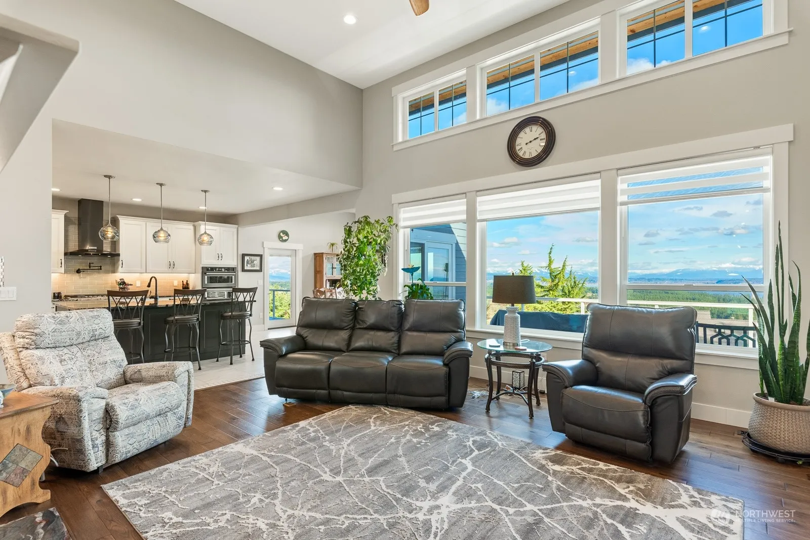 EPITOME OF LUXE MAIN FLOOR LIVING! Two Primary Bedroom Suites with top of the island East Facing panoramic Mountain/Sea Views! Both Primary Suite bathrooms have floor to ceiling tiled walk in showers. Extraordinary Master Chef entertaining kitchen with high end appliance package. Single level living at its finest! Lower level boasts 1100SF MIL, game room, and a trimmed out workshop with roll up glass door. Xlong 3 car attached finished garage w/New Age stone composite flooring. 2 gas heating systems, 2 heat pumps, Wired for Generator. Meticulous, high quality, and detailed craftsmanship home is located in the Highly Desirable Camano Hills gated community. MUST SEE!