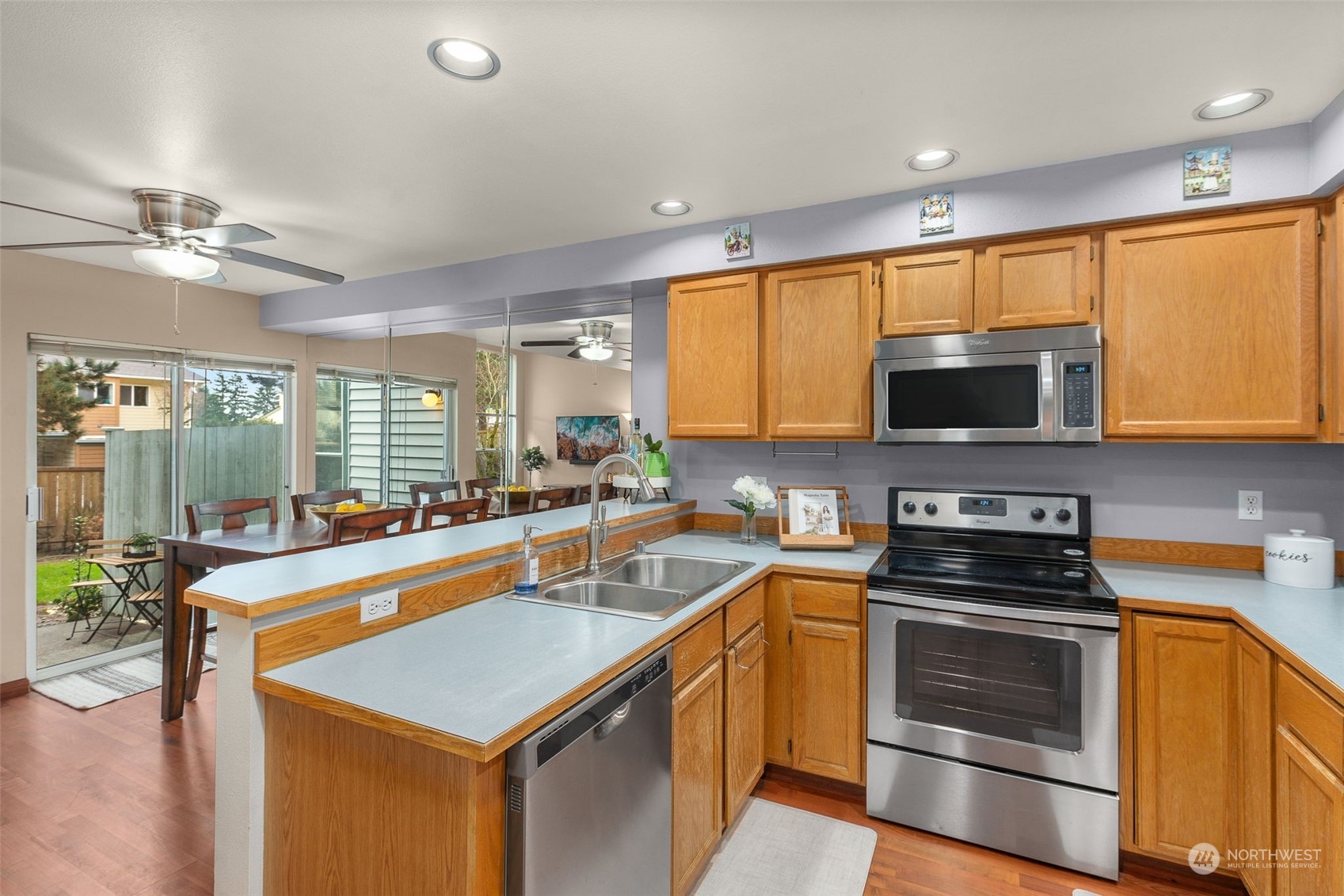 Welcome to this light & bright condo with 3 bedrooms & 2.5 baths. Enjoy seamless living on the main level with an open floorplan connecting the kitchen with stainless appliances, dining area, & private patio. Retreat to the inviting living room w/its soaring ceiling & a cozy fireplace. Upstairs, the primary bedroom boasts a spacious ensuite & two closets, while 2 additional bedrooms share a full bathroom. It is a great community with an amazing location, just minutes from Kent Station where you’ll enjoy over 50 shops & restaurants as well as several entertainment options. At Kent Station, you’ll also have access to the Sounder Train & Bus station and the Light Rail coming soon. You’re going to love where you live in Le Blac Garden!