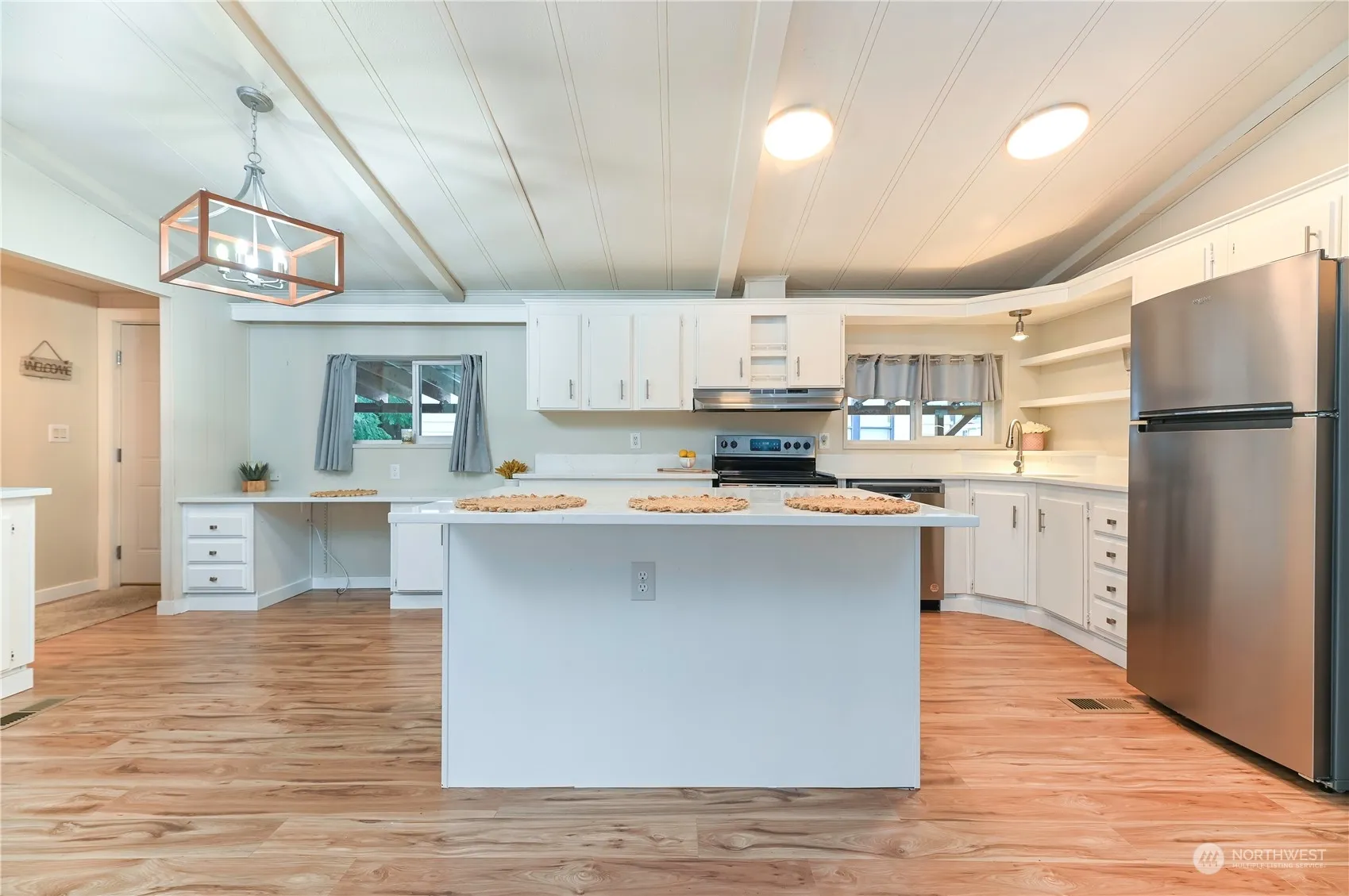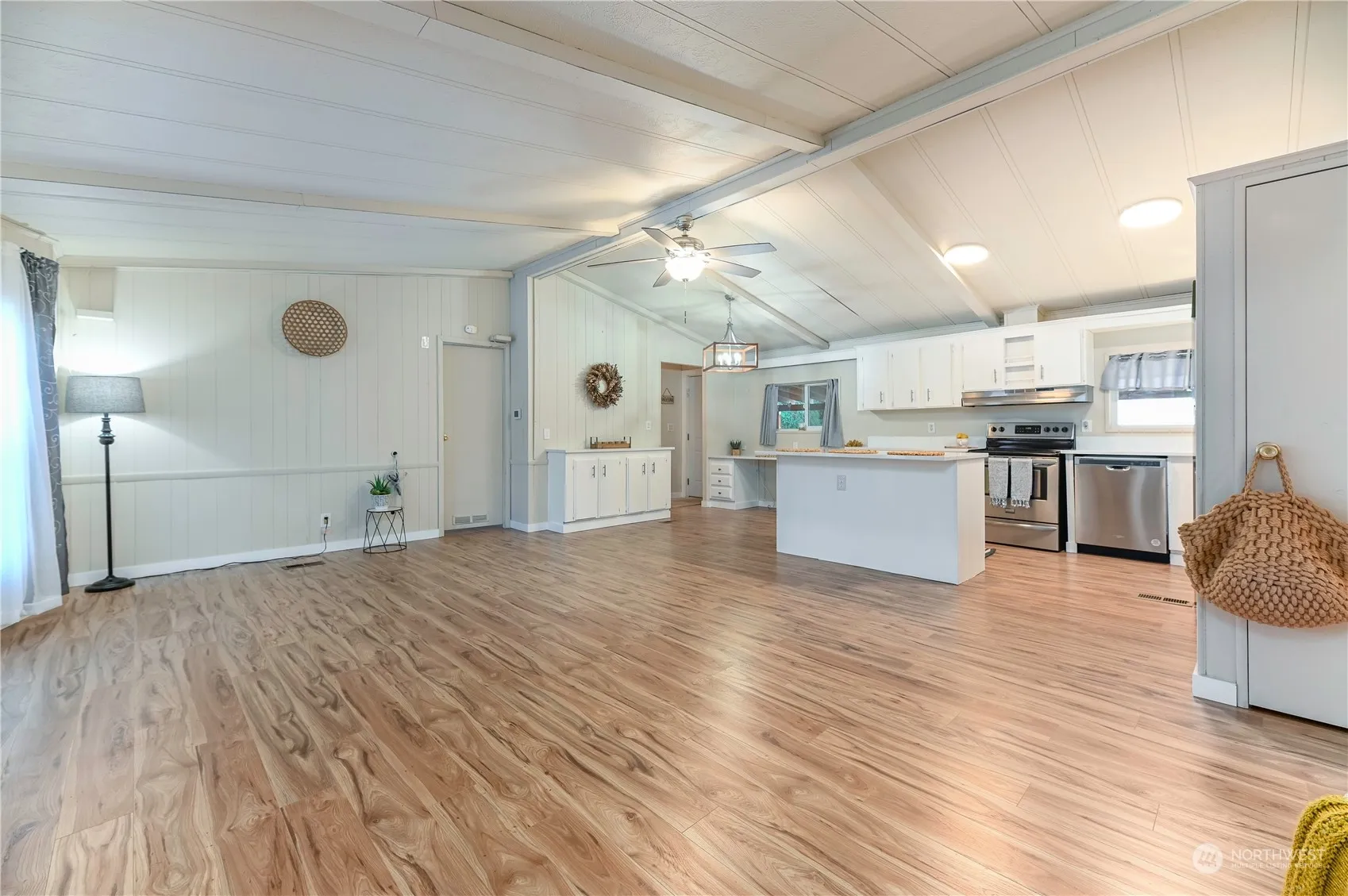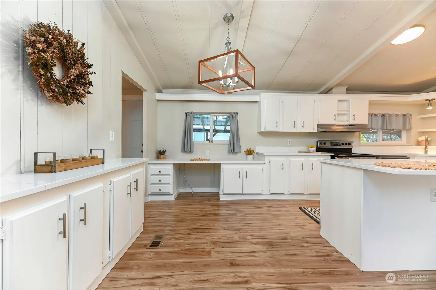 This beautifully updated 3 bedroom, 2 bathroom home in Cherry Hill Estates 55+ park, has a wonderful creek in the backyard, a large side deck, fire pit, & raised flower beds providing peace & relaxation! All of the big expenses have been taken care of! New HEAT PUMP (A/C for those hot summer days!), plank flooring throughout, new paint, new efficient FURNACE, complete window package, roof, added a 2 car covered parking sp, added 2-story shed, & even a PICKET FENCE! Enjoy this OPEN CONCEPT kitchen w/ plenty of counterspace, newer appliances, built-in office area, all centrally located to add to the separation of the bedrooms. Escape to the primary bedrm w/ WALK-IN closet, en-suite w/ double sinks, separate shower & SOAKING TUB. Welcome HOME!