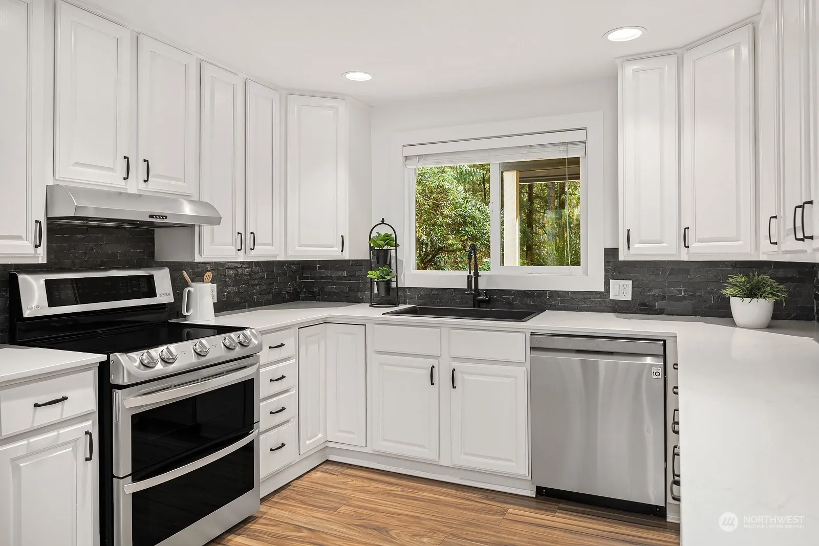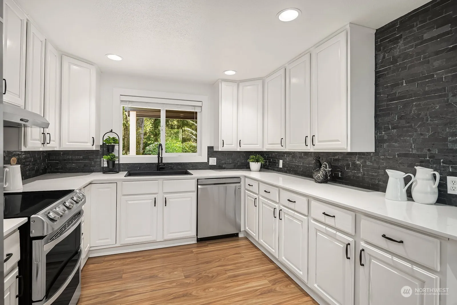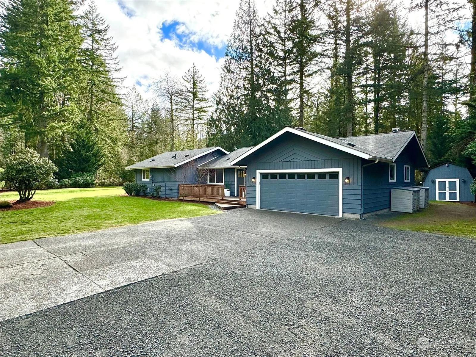 Experience charm in this updated 3 bed/2 bath rambler, ideally situated on a private 1/2 acre lot. Tastefully updated, this 1840 sqft home boasts a well-designed floor plan with ample storage, making it ideal for all stages of life. Modernized interior features white cabinets w/quartz counters, SS appliances, LVP flooring, & fresh paint inside & out. Step outside to the generously sized deck & revel in the tranquility provided by the mature landscaping & greenbelt with abundant wildlife. Furthering its appeal is the spacious garage, over-sized insulated shed, updated systems, & parking space for RV/toys. Discover the convenience of proximity to trailheads, nearby parks, and the thoughtfully appointed town of North Bend!