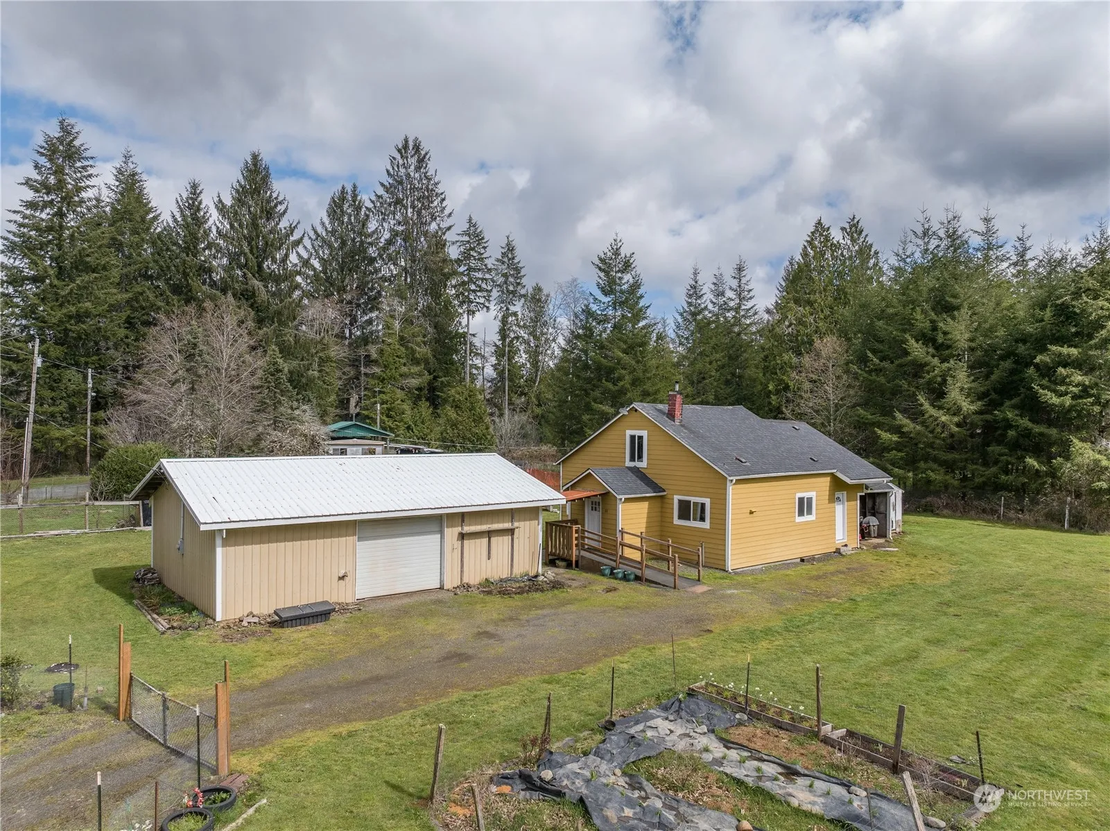 Experience the best of both worlds with this 1-acre country home, just minutes from town. Surrounded by wildlife, near beaches & rivers, it’s a PNW dream for country living enthusiasts. large garden plot, pear, plum, fig, blueberry, rhubarb, apple trees, and more. Plus a chicken coop for hobbyist farmers. 24×36 garage/shop is equipped with a wood stove, plumbing, electricity, and a fan ventilated game processing room. The main level has a spacious kitchen with dining area, large laundry room, bedroom, and bathroom. Upstairs has 2 bedrooms, office/bonus room, and a versatile landing area. Recent updates:new flooring (2024), roof (2021), and cement board siding (2020).This property is a haven for those seeking a balanced country lifestyle.