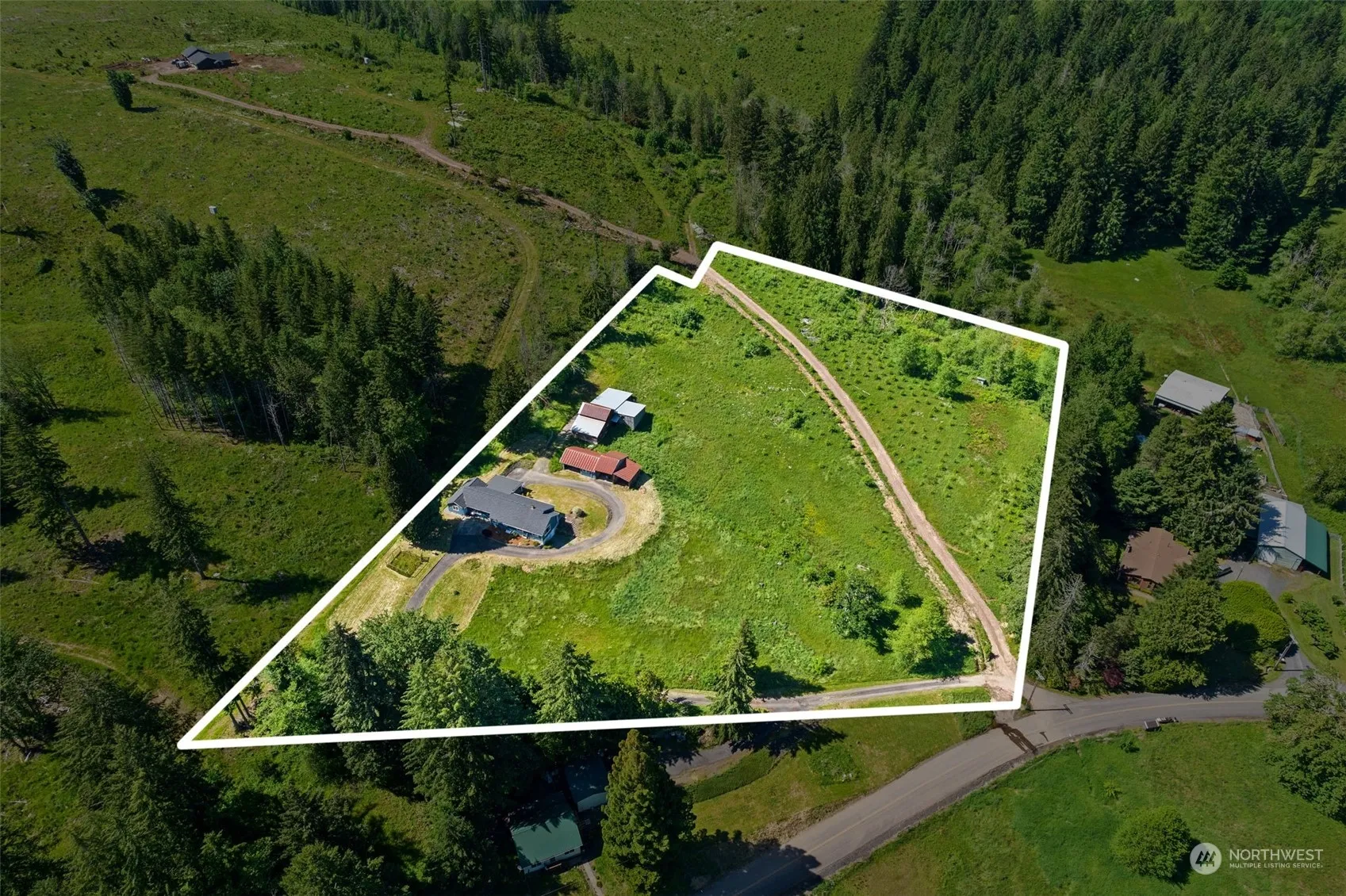 Beautiful Country Setting. 2 bedroom, 1 bath home with Large living room, family room, nice spacious kitchen with dining area and small island. Updated laundry area with an abundance of storge. 700 sq.ft. of basement area perfect for work out area, office space, or storage. Separate attached studio w/1 bed. 1 bath and spacious living area, perfect for guests or mother in law quarters. New Roof and some interior updates. With some TLC and finish work you can make this house your home. Situated on 5+ acres with 2 great primitive barns/shop/outbuildings. Country feels yet just minutes to town and I-5. Don’t wait to view this one, it wont last long.