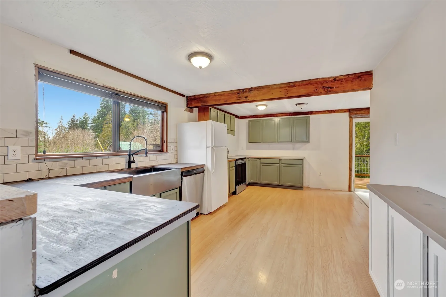 Bring this gem back to its full potential! Over 1900 sq ft, on almost .75 acres (two tax parcel numbers), this home features many possibilities with its space & location. Close to the lakes, beaches & river, away from all the hustle and bustle, nestled among trees and butted up to a seasonal creek, it’s the perfect spot to reset after a long day. The interior features two living areas, large kitchen, a fireplace insert, claw foot bathtub, an upstairs perfect for a 3rd bedroom or hobby area & more. Outdoors includes an outbuilding, room to garden and create a beautiful oasis, large deck, nature sites & more! With some TLC and work, this could be the perfect place to reside, create a possible vacation rental, or whatever your needs may be!