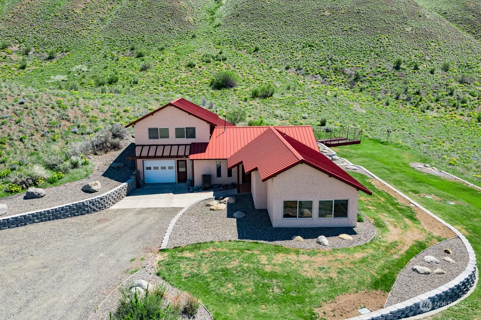Private and secluded, this Southwest style home is nestled in the heart of breathtaking scenery. Step inside and be greeted by a freshly painted interior that exudes warmth and charm. Natural light floods the space through beautiful arched windows capturing the view of Indian Lake and Kittitas valley. The kitchen offers NEW granite counters and SS undermount sink and faucet. Ceramic tile thru out, 2 main bedrooms, upstairs bonus room has NEW Luxury vinyl flooring and pool table. Outside you will often see wild life passing through, garden beds, sprinkler system, water feature and 20×20 shop/garage. Approximately 4 miles to boat launch on Yakima River. The well at 305 ft., allowing 5,000 gallons per day, definitely sets this home apart!