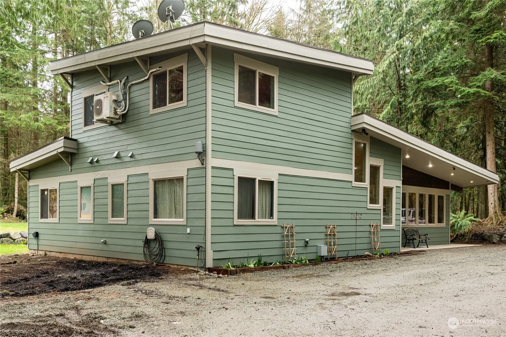 Welcome to this contemporary custom-built home set on a tranquil and secluded 5-acre property with easy access to I5. The residence features vast open areas and is surrounded by acres of natural forest. With custom cabinets, smart lighting, media features, radiant stained concrete floors, a master suite on the ground floor, seamless indoor/outdoor living, and a spacious kitchen perfect for entertaining, this home offers an exceptional living environment. Additionally, there is a fully equipped workshop for projects, a fenced garden, a chicken coop, and a pumphouse near the gated entrance. Perfectly located just a stone’s throw away from upscale shopping, the breathtaking north Puget Sound, and downtown Arlington!