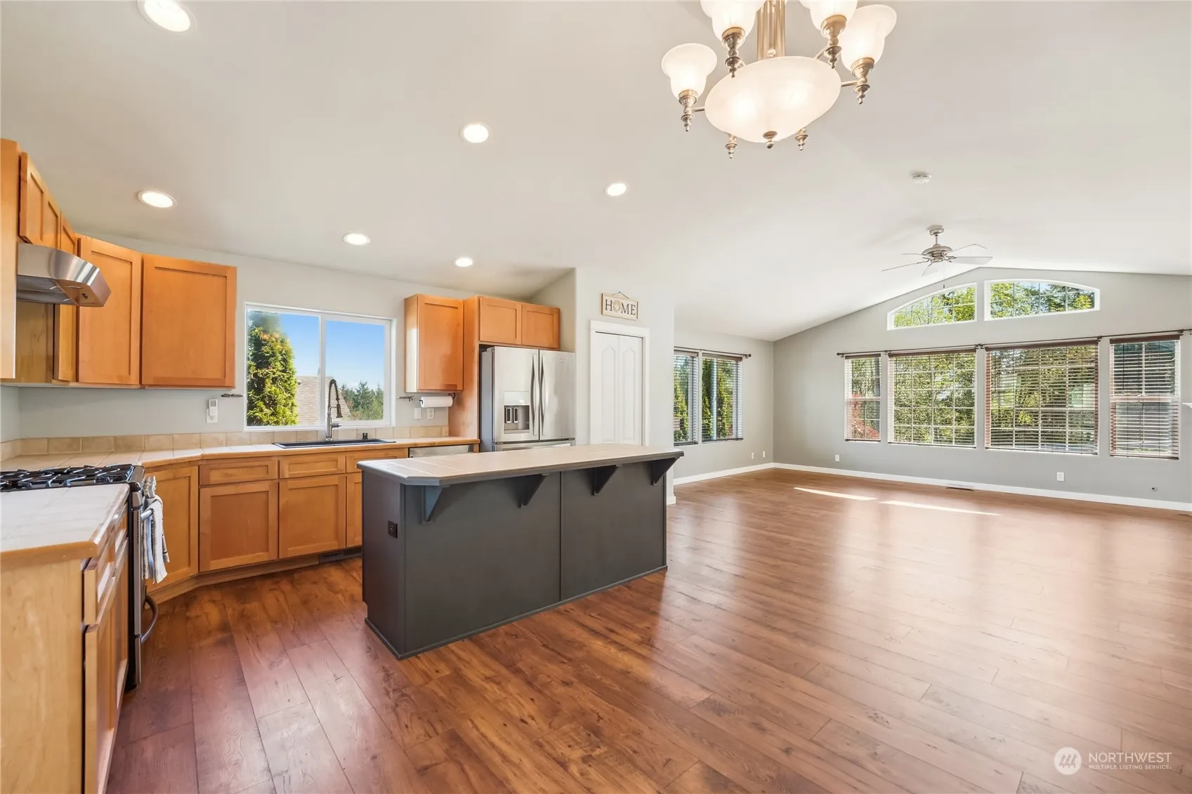 Splendid split-level boasts a perfect blend of comfortable functionality and contemporary style. The open light-filled floor plan seamlessly connects the living, dining and kitchen areas. Vaulted ceilings enhance the sense of space. Wonderful cook’s kitchen with SS appliances & convenient center island, great for entertaining. Four newly carpeted, generously sized bedrooms and 2.5 baths, provides ample space for everyone. Main floor office w/french doors. Air conditioning ensures a pleasant year round environment. 2-Car garage with EV Charging station. This spacious home is situated on a quiet cul-de-sac in the Ridgetop community, providing quick access to Bangor and downtown Silverdale. Your dream home awaits in highly desirable Ridgetop!