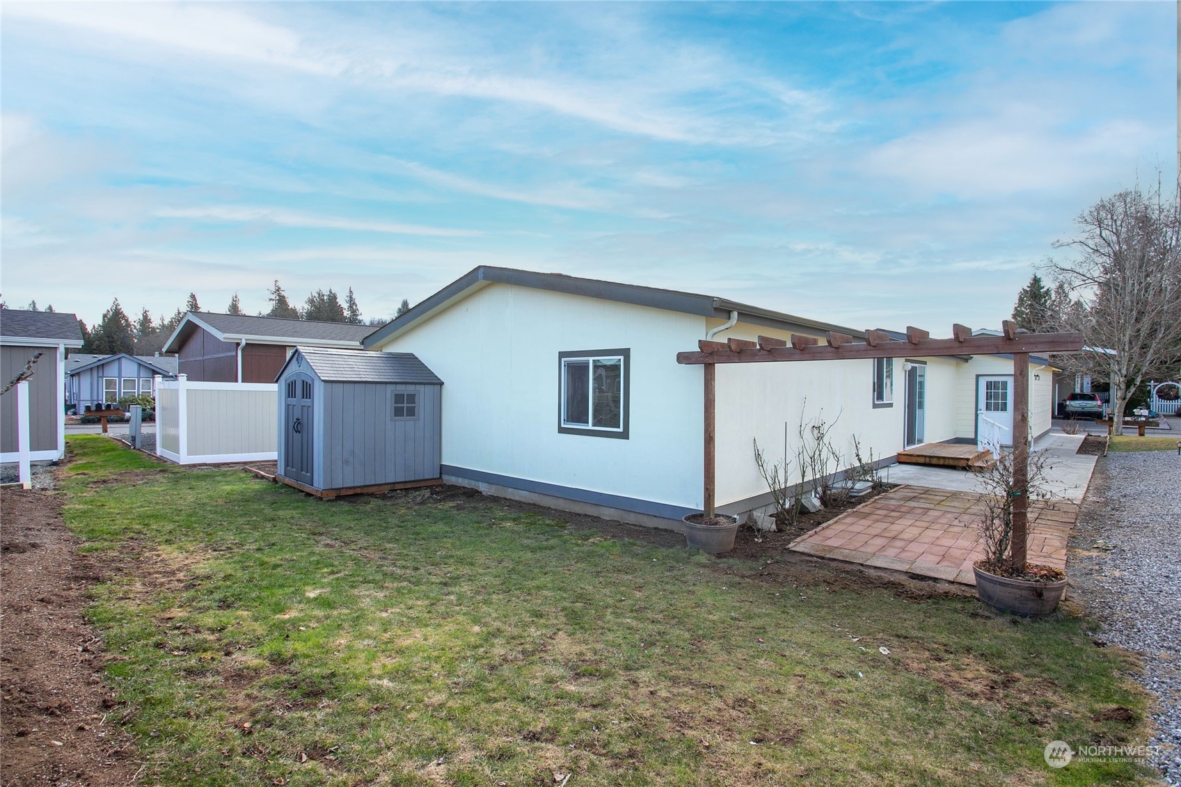 Portal Park is one of the nicest and cleanest 55+ spots in Ferndale. This well cared for 3 bed/2 bath home is nestled in a quiet community and is close to downtown Ferndale and easy I-5 access. Special features are a partial fenced backyard, paved walkway, & a green belt for added privacy and security. The layout is perfect in this home with the primary suite separate from the other 2 bedrooms. The open concept kitchen, living + dining room makes great space for entertaining. In addition, there is a large 2 car garage, ideal for extra storage.