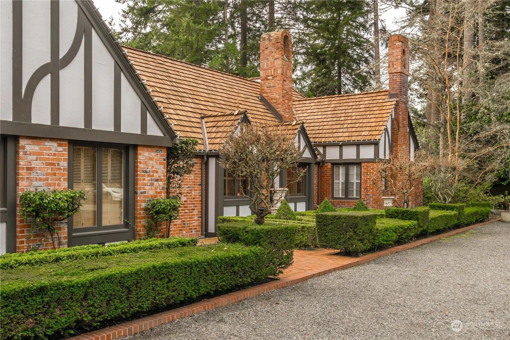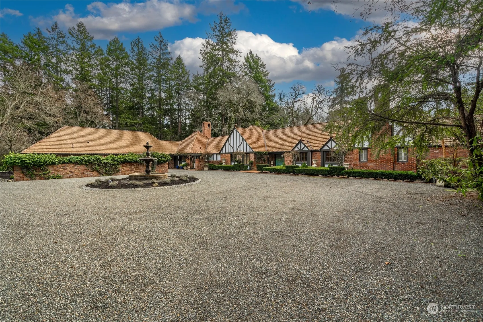 Custom gated Tudor estate w/1.6 acre gardens for year-round entertaining. 5 bed and 9 bath was designed by famed Rolland Terry for a timber Barron family significant to the area, impressive architecture & solid Beams. Chef’s kitchen w/top of the line appliances, kitchen size pantry, open beams in most rooms and 5 fireplaces. Most rooms have views of the courtyards w/soaring ceilings. Guest house is separate private wing, 3 car pass thru garage. the primary offers two separate ensuite’s with own walk in closets. Extra rooms include a Gym,2 wet bars, craft, loft, bank vault, library, 3 laundry rooms (with W/D’s). Patio w/wood-fired pizza & DCS BBQ. built-in wifi & cameras system. Comes with fully Furnished guest house and $4k+ a month income.