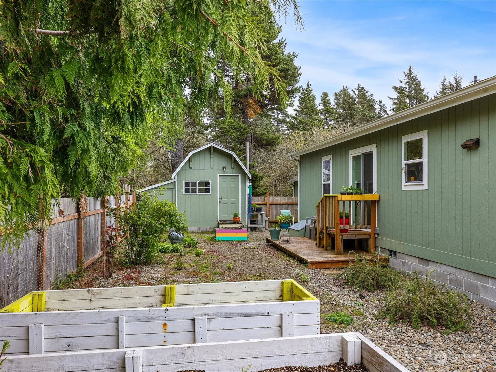 Welcome to this extensively renovated corner property! Every detail has been upgraded, from custom paint to vinyl plank flooring, ceiling fans, light fixtures, and more. Enjoy the new kitchen features, updated bathrooms, crown molding, custom window coverings, and a security system. Outside, you’ll find three security doors, raised garden beds, a garden sink, a two-car detached garage with an insulated hobby room that has A/C and heat, great for a music room or art studio. The property also features a ‘Shed’ with heat, water, and plumbing for a bathroom, ready for you to make your own shed or guest room. Additionally, there is RV hook-up, ample parking, and deeded beach access. Don’t miss out on this beautifully upgraded home!
