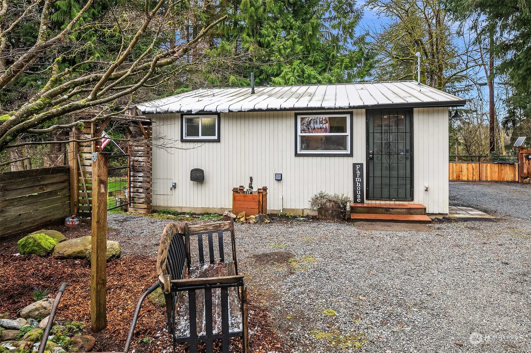 Discover the tranquil retreat in this charming 1-bedroom + den/office, .75-bath farmhouse, set on nearly 1.5 gated acres of serene countryside. Ideal for horse lovers or hobby farm enthusiasts with a beautiful 2-stall barn, 2 dry lots, & expansive pastures. The property also boasts a spacious 2-car detached garage/shop, RV parking & versatile tack/storage shed, hay shed, & new greenhouse, ensuring ample space for all your needs. Newly updated with fresh paint & new gutters, this farmhouse marries rustic appeal with modern conveniences. Never be left in the cold with a new standby generator. Whether you’re an equestrian enthusiast or crave a secluded oasis, this home provides a harmonious blend of country charm & contemporary comfort.