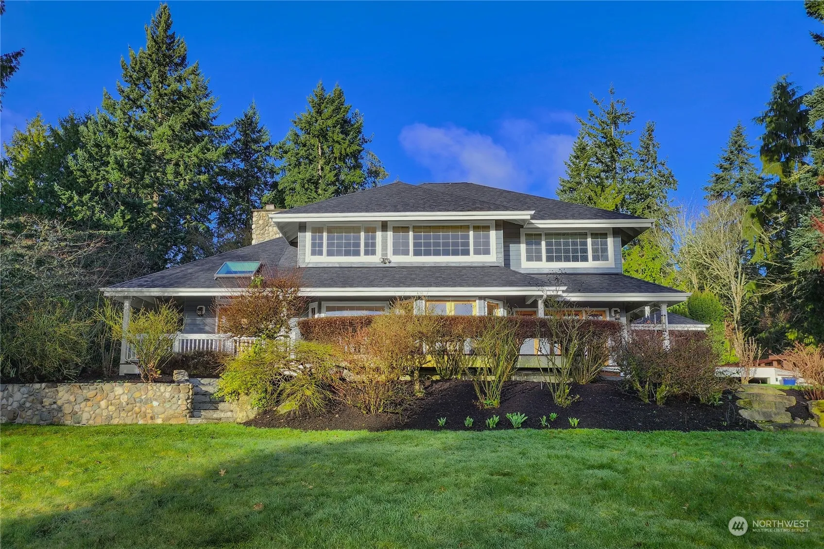 Meticulously crafted and architecturally designed, this home is gracefully situated on over 2 acres within the prestigious Derby Downs community, adorned with expansive open spaces and trails leading to the Grand Forest. Boasting impressive Cascade Mountain views, the residence has been thoughtfully maintained with numerous upgrades, including renovated bathrooms, a strategically improved layout, freshly refinished hardwoods, a brand new Hanley roof, and a generous nanny suite above the 3-car garage that adds versatility to the home. Inviting, professionally landscaped gardens set the tone, while this exquisite property enjoys a prime location near town, schools, and a community equestrian facility.