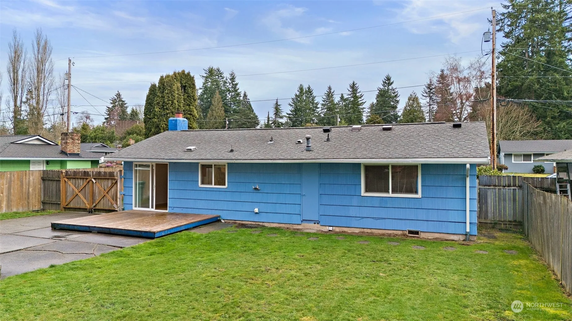 Perfect starter home in a well established neighborhood at an affordable price. This 3 bed 1 bath rambler features updated kitchen with custom built cabinets, new appliances, two sinks, and newer vinyl windows. Step inside and find the original hardwood floors that lead to a spacious living room and dining area. Bathroom was also update, with new tub/shower surround and fixtures. Large lot with storage shed and concrete patio. Deck off dining area is perfect for entertaining and enjoying summer BBQs. Easy access to freeway, parks, future light rail and shopping. This home is a must see and won’t last long!