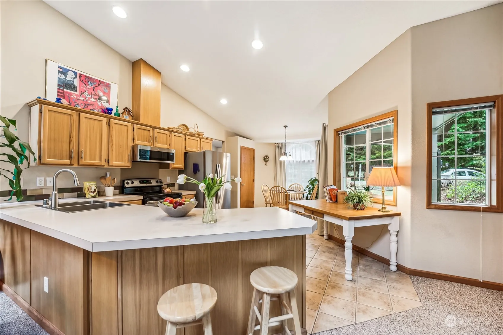 Beautiful rambler available on the Anderson Island Riviera Golf Course. This spacious& inviting home is perfect for entertaining! The roomy kitchen has both a breakfast bar and nook. The open living room with it’s vaulted ceilings, many windows, &skylights is full of natural light. Down the hall, a lovely primary ensuite with soaking tub & huge walk-in closet. 2 additional comfortable bedrooms, full bath, & separate utility room with built-in shelving. Outside, a large, level back yard with 2 patios perfect for outdoor dining. Spend your days golfing, kayaking, boating, hiking, playing pickleball & tennis, walk to the lake or dine at the waterfront restaurant. Anderson Island is a 20-minute ferry ride from the Historic Town of Steilacoom.
