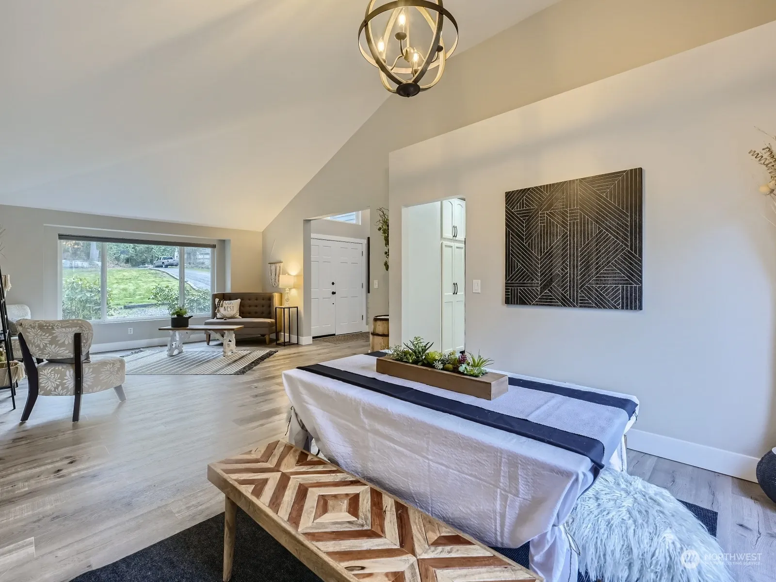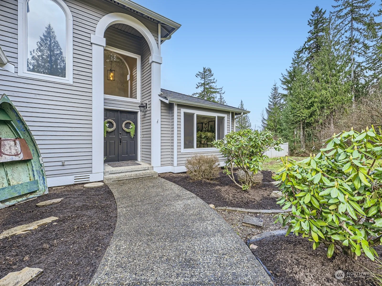 Enjoy the best of lakeside living lakefront in this immaculate home with 75 ft of sought-after Flowing Lake waterfront. Your private dock and beach area promise endless boating & fishing adventures. Step inside to an entertainer’s paradise with a stylish open kitchen, quartz countertops, and newer laminate flooring flowing seamlessly into the family room, where large lake-view windows and a cozy fireplace await. Extend your living space outdoors onto the expansive deck. Retreat to the luxurious master suite with a freshly remodeled spa like 5-piece bathroom boasting stunning views. Heat pump, NEW interior & exterior paint all add to the allure of your lakeside haven. 1 year home warranty included. Welcome to your dream home!