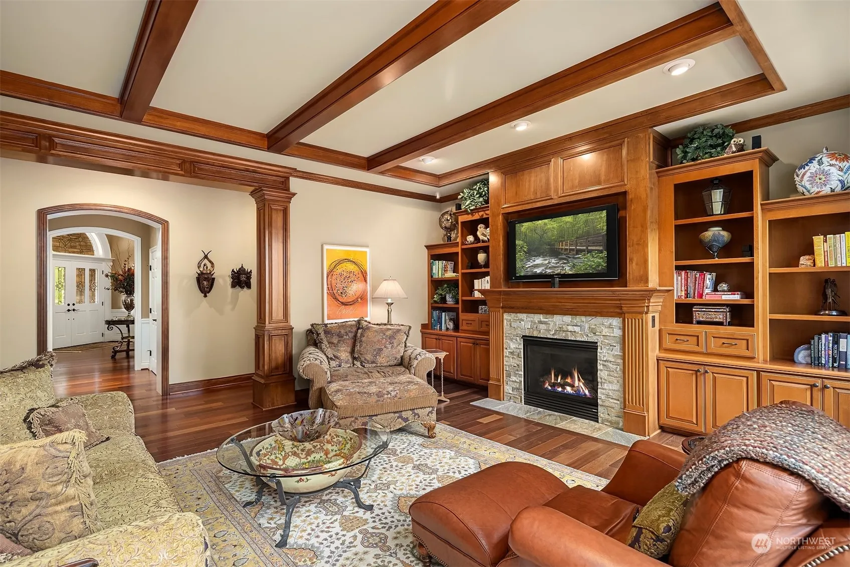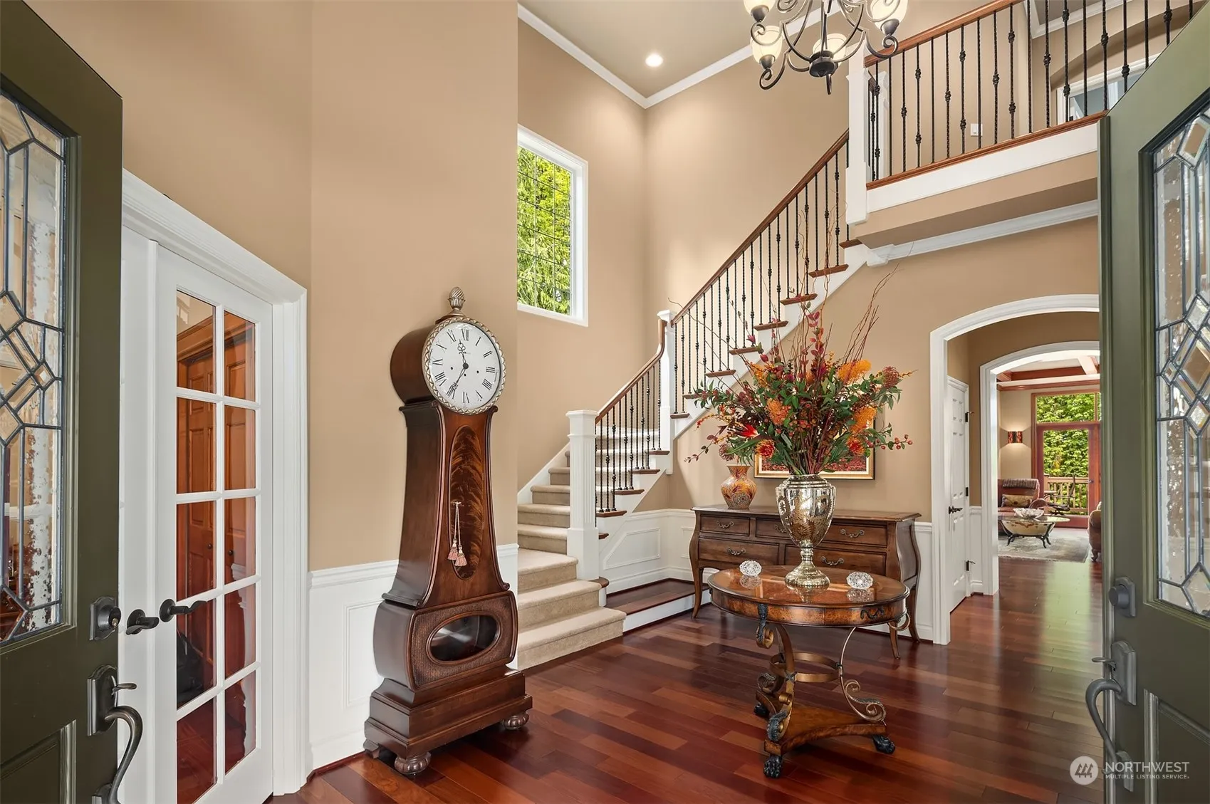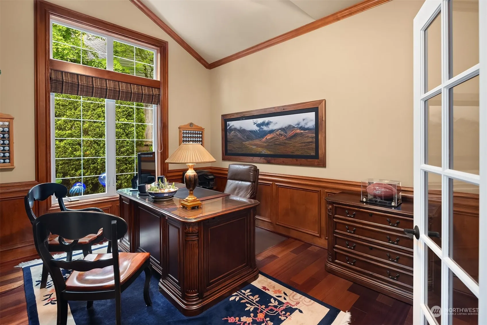Exceptional William Buchan home in desirable Timberline! Perfect floor plan, luxury finish, best location, top rated schools & safe neighborhood, this home has All! A private driveway leads to this beautiful home, sits on a 1/2-acre lot and backs to greenbelt. Grand entry with vaulted ceiling, rich alder cabinetry, lustrous slab granite, high-end appliances, dramatic beamed ceilings, huge entertainment deck, wine cellar. Main floor features great room, kitchen, dining room, office. Upper level has primary suite w/ fireplace, two additional bedrooms, bonus room. Lower-level features recreation room, two bedrooms, wine cellar. Surrounded by nature, mature garden with blooms all year long. Easy commute to HWY520. On tech company shuttle route.
