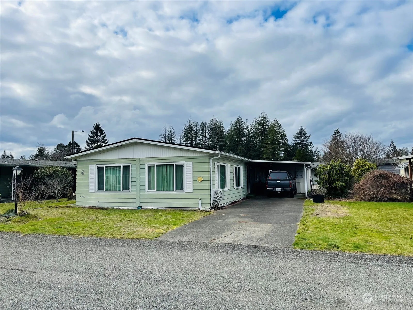 An incredible opportunity at this price. Spacious cosmetic fixer home in sought after 55+ community, Christmas Village. Enjoy 2BR/2BTH, huge living room, formal dining room and open bright kitchen with breakfast bar off of family room. Slider to side yard allows for an abundance of natural light. There is a big primary bedroom with built in vanity and large primary bathroom with separate soaking tub and shower. Nice sized 2nd bedroom with access to 2nd full bathroom and laundry room with exterior door to off street parking and attached carport with additional storage building. Fantastic location close to Mason General Hospital, shopping and DT Shelton. A must see!