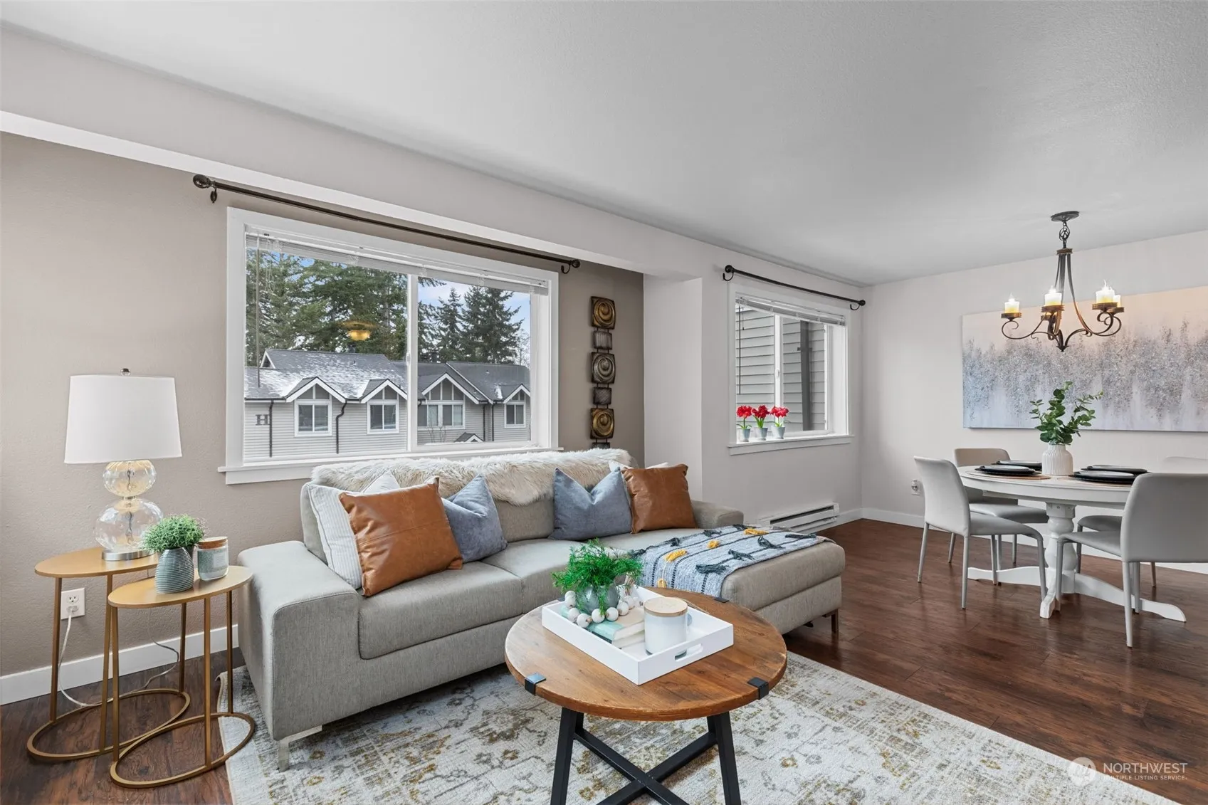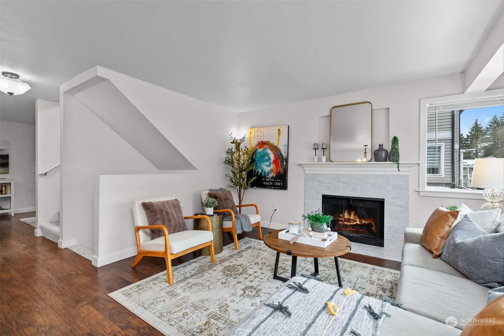 Welcome to the highly desired Auguston at Mill Creek! Enter this fully updated corner residence through your full size 2 car garage, and experience an abundance of all day natural light and modern style. Quartz counter tops, stainless everything, luxury flooring, romantic wood fireplace, a patio and lots of wonderful spaces provide the finest in open concept lifestyle abound! Cozy new carpet floats you up to the 2nd level to your Primary with luxury ensuite and spacious walk in closet. 2 more bedrooms separated by a 2nd full bath give you privacy in your living space. Conveniently, everything you could need is right across the way in the Town Center. A beautiful home to live and love all the seasons of the PNW! A very well managed HOA.