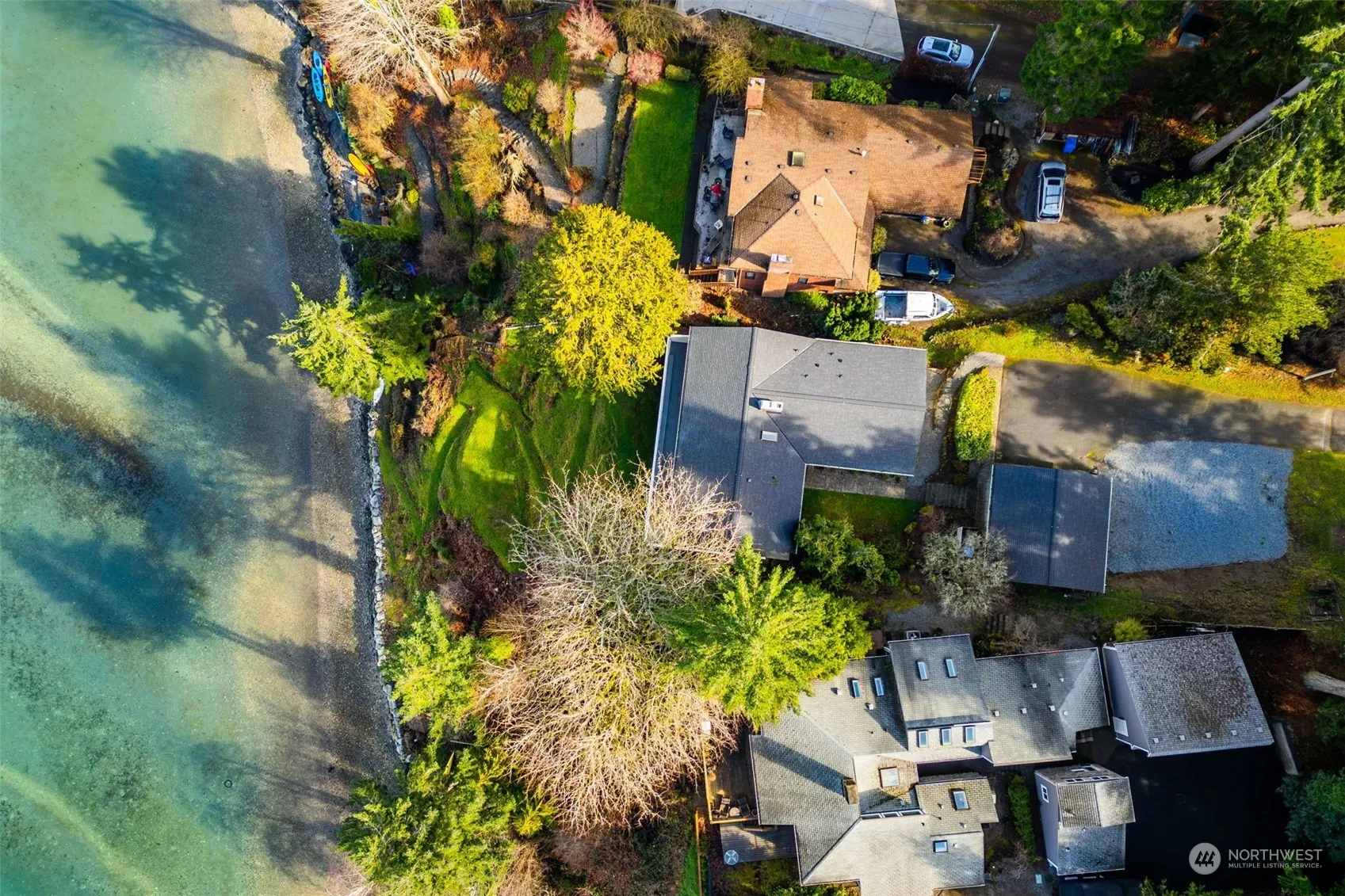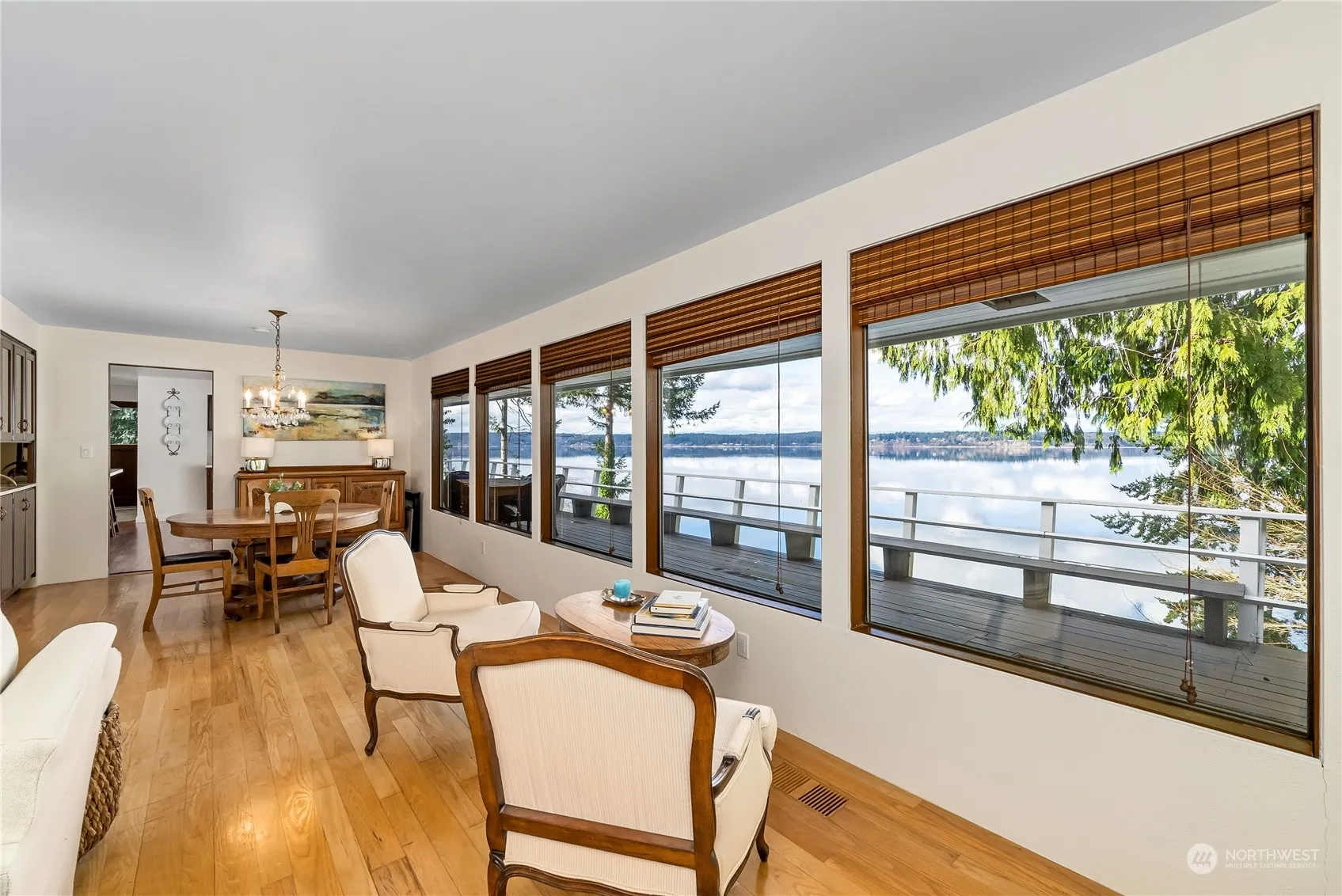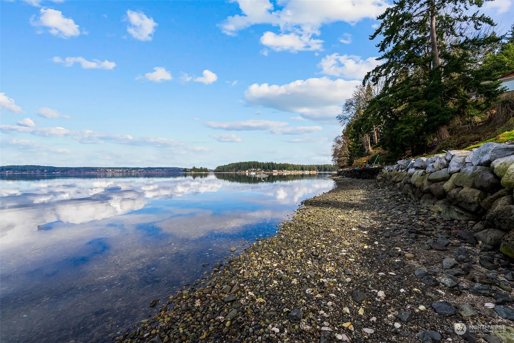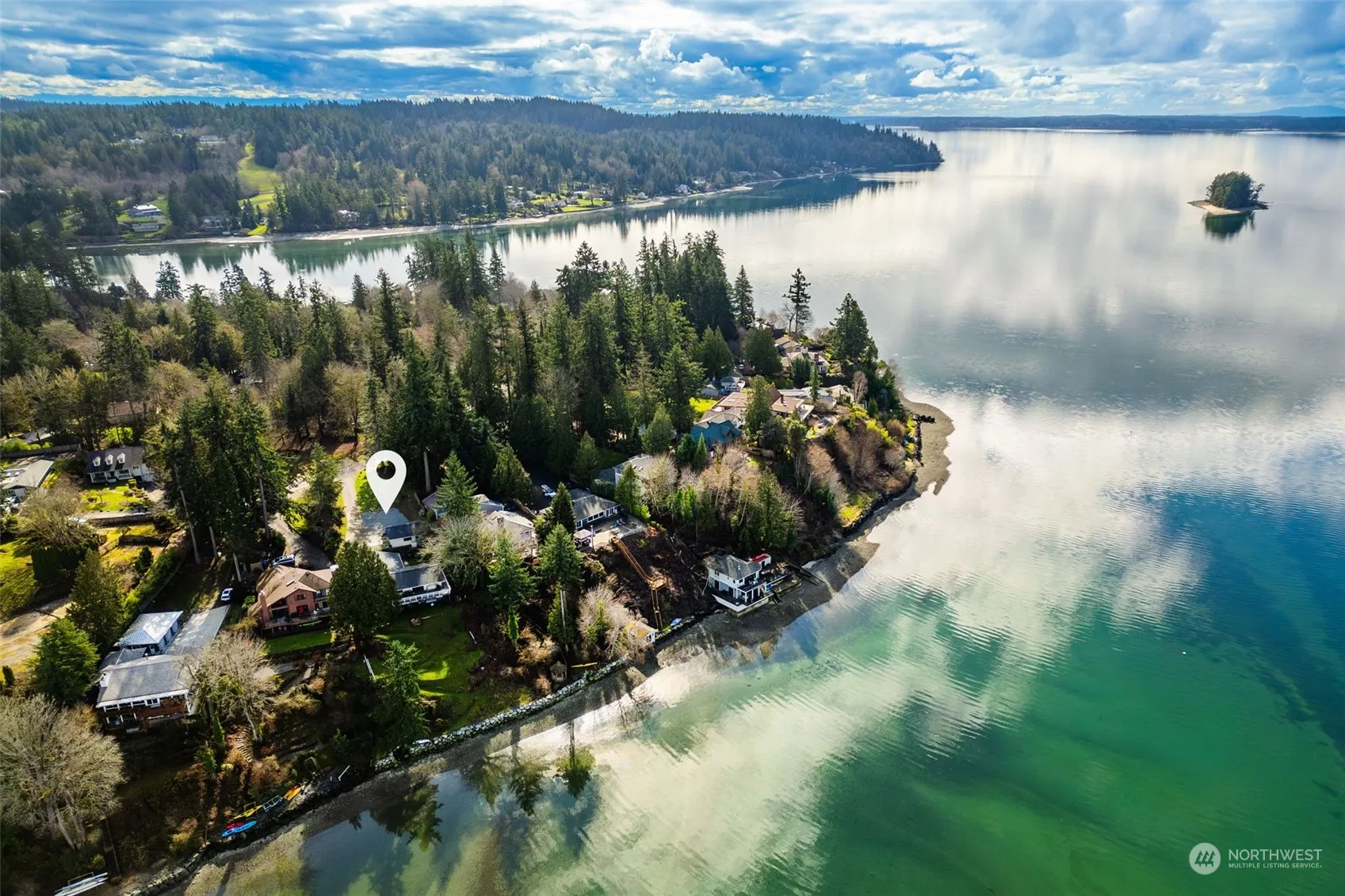 Boasting a captivating west/northwest exposure, this Raft Island mid-century modern residence offers awe-inspiring views of the Olympic Mountains & a gentle walk to the beach. This 5 BR home offers an opportunity for personalization, with move-in readiness and ample potential for transformation into your ideal living space. Discover its brand new roof, original hardwood floors, large picture windows, and a cozy fireplace. This medium-bank waterfront property features a beautiful granite bulkhead and easy beach access for walking, kayaking, paddle boarding, swimming, and whale watching. Raft Island has a new bridge, new roads, new pickleball courts, two beaches and a boat ramp! Island life and NW waterfront living never looked so good!