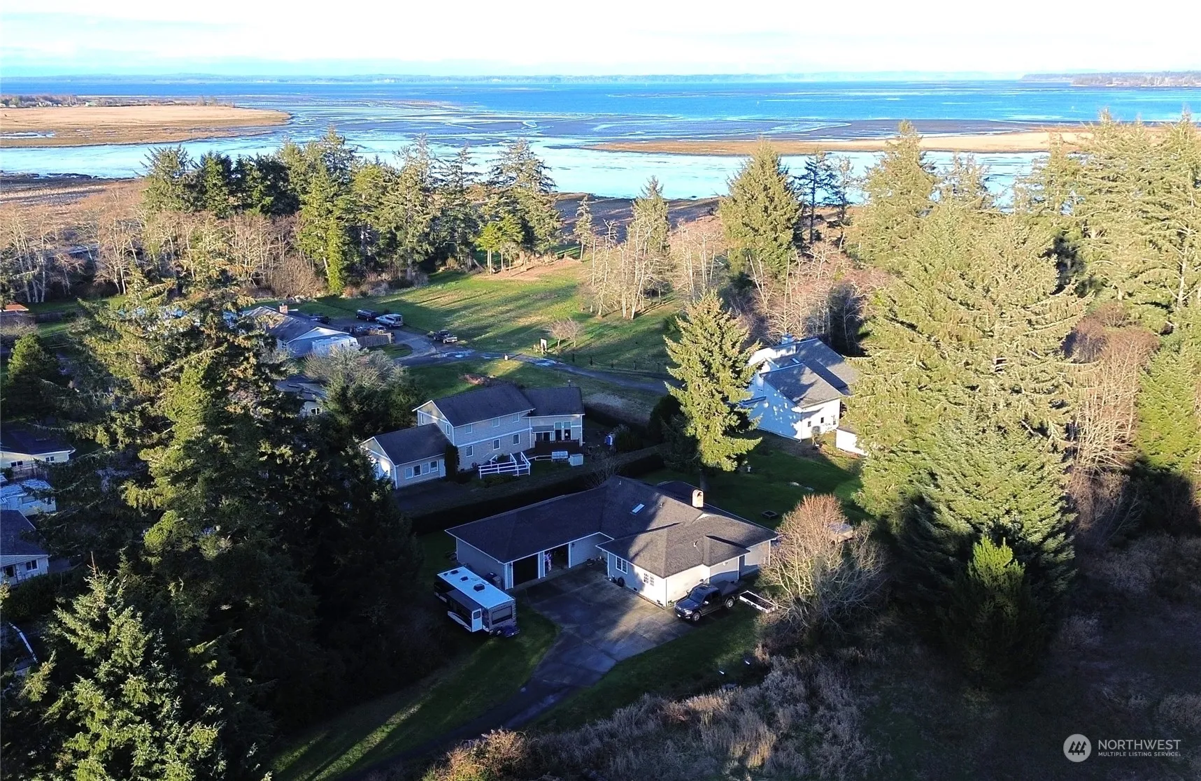 This BEAUTIFUL home is rock solid and ready for your enjoyment! It has an attached 2 car garage, and a hot tub out back and a lovely Bay View from the dining room and the living room! Home features 3 bedrooms and 3 bathrooms and a couple of bonus rooms! All new appliances in the kitchen and a new kitchen sink, new faucet and nice flooring throughout the home! Solid maple woodwork throughout the home! Sky lights in the entry and the living room keep things bright in this one level home. Nice porch out back to sit and relax and enjoy the beautiful 1-acre property and the bay view! There is room to park an RV next to the garage and room behind the garage for adding storage or gardening. Home was built in 1993 and has been nicely maintained!