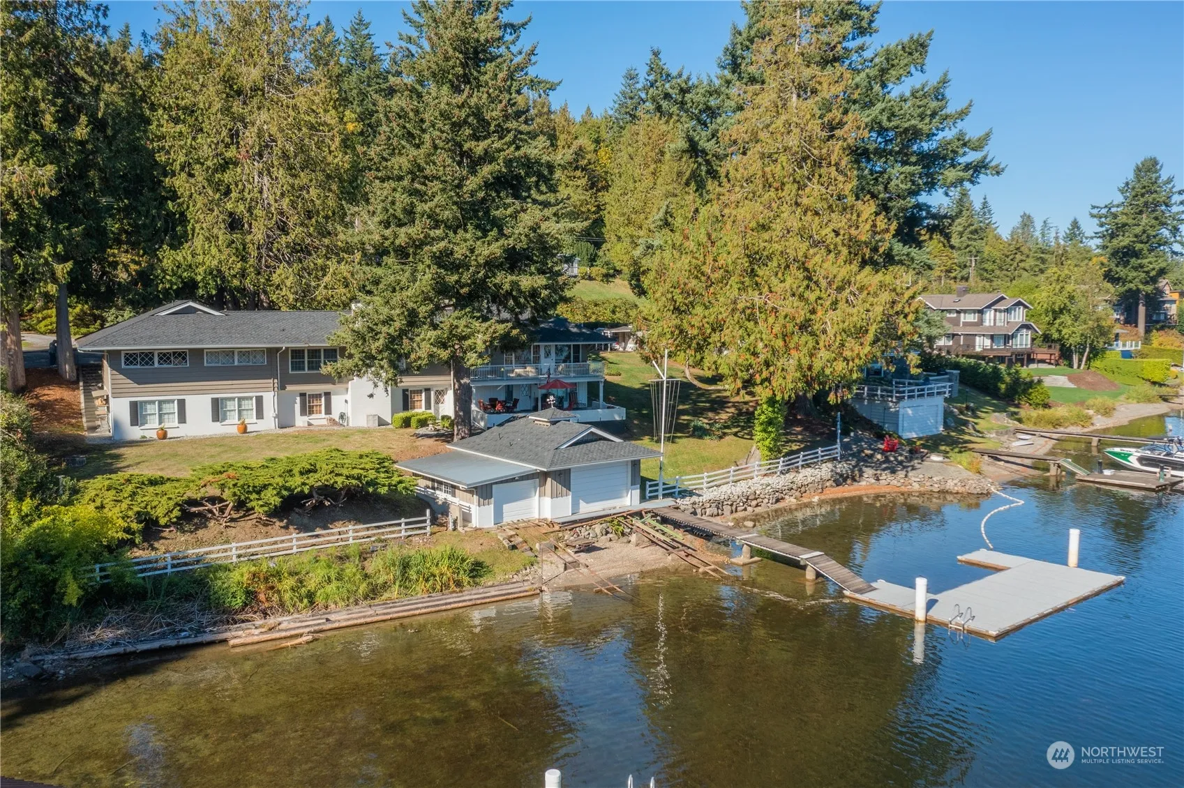 Historic lodge-style home on a massive quadruple lot with 180′ fronting Lake Whatcom with twin boathouse & large dock with sandy swimming beach. Peaceful and private home features 4 bedrooms and 3 baths, with lake and mountain views from all bedrooms. Primary suite with fireplace and walk-in-closet on the main floor, spacious living room, deck off the dinning room, patio downstairs off the family room and many many more other features that this home has to offer. Twin boathouse has 2 trolly’s to bring your watercraft in and out, 3/4 bath and lots of storage. Oversized 3 car garage & extra room for all your toys. Just minutes from town, on a quiet street of a great neighborhood of Geneva. Life is better on the beach!