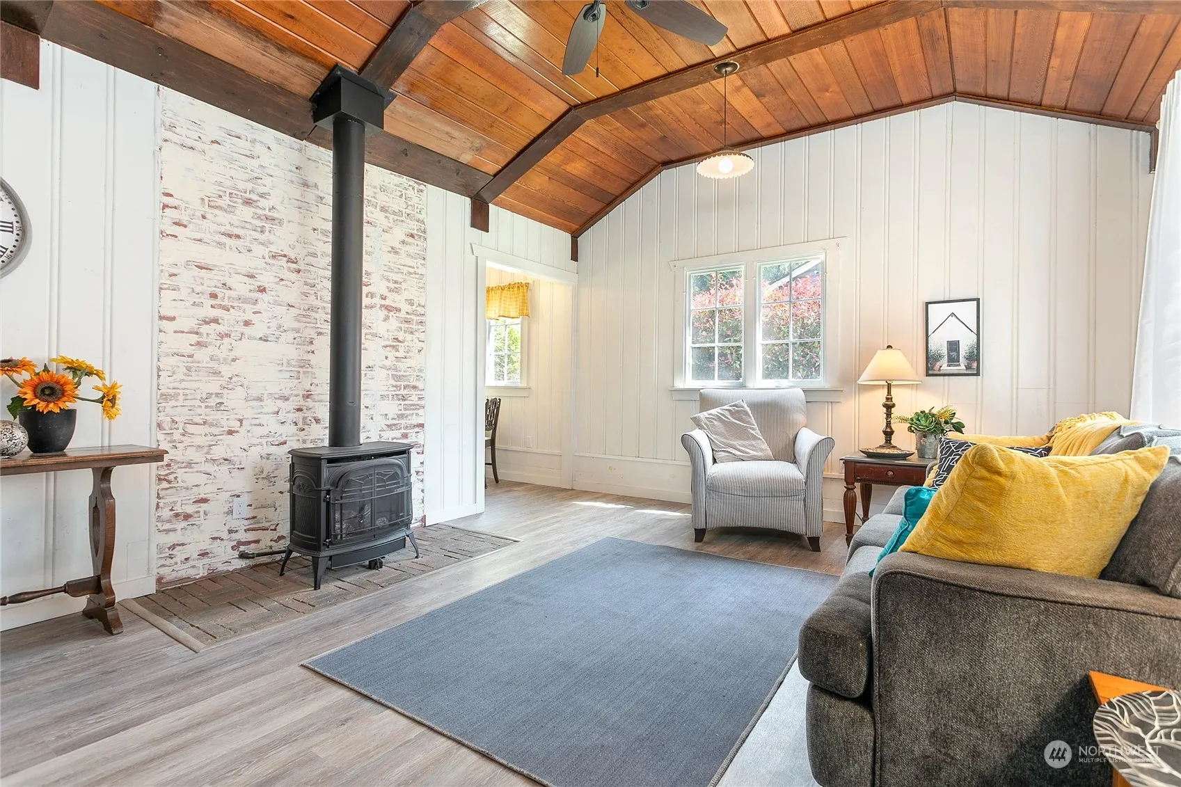 Welcome to Cottonwood Beach in Birch Bay. This 2-bedroom, 1 bathroom home is a blend of historic charm with modern amenities. Completely updated. Kitchen just updated with a brand-new stainless-steel dishwasher, refrigerator, deep sink as well as butcher block counter tops. Front entrance opens up to high ceilings and cozy fireplace creating a compelling living space. Large open back yard surrounded by tall cedars offering a peaceful and private setting. Three outbuildings for additional storage options. This home sits on a lot and a half with possibilities of a garage/ADU adding more versatility (verify with the City of Blaine) A tranquil retreat located on a no through road and a five-minute walk to Halverson Public Beach