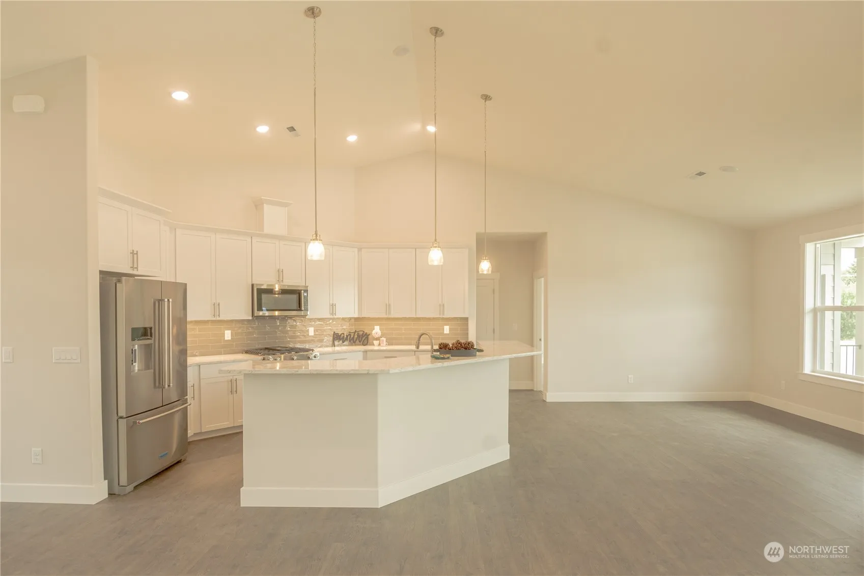 Indulge in the ultimate convenience with the garage featuring an over-sized RV bay. Whether you’re an avid outdoor enthusiast or simply crave additional storage space, this versatile garage accommodates all your needs with ease. As you step through the front door, you are greeted by vaulted ceilings Bathed in natural light streaming through expansive windows, the open-concept floor plan creates a welcoming atmosphere ideal for both relaxation and entertainment. A unique floor plan allowing for a large primary bedroom with en-suite/walk in closet, 3 bedrooms, or 2 beds and an office, large full secondary bathroom offers an abundance of space. A full covered deck, fenced yard and landscaping complete this turn-key home.