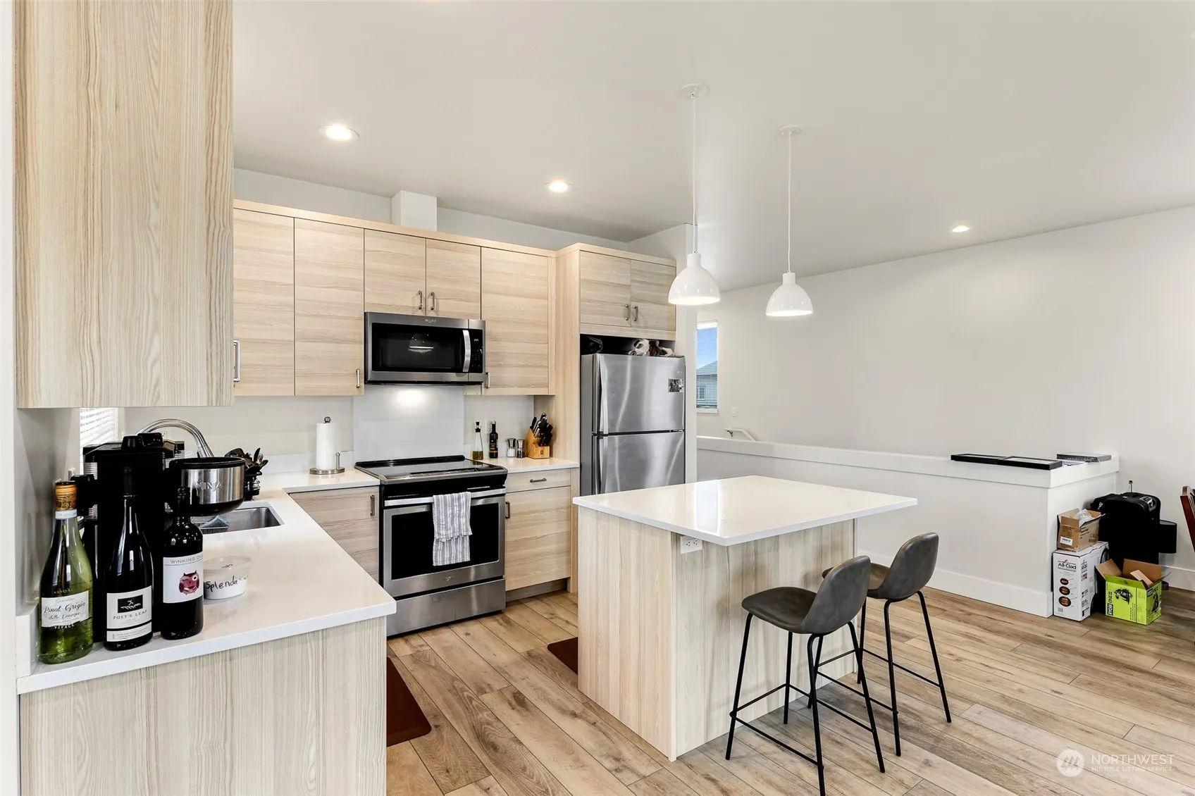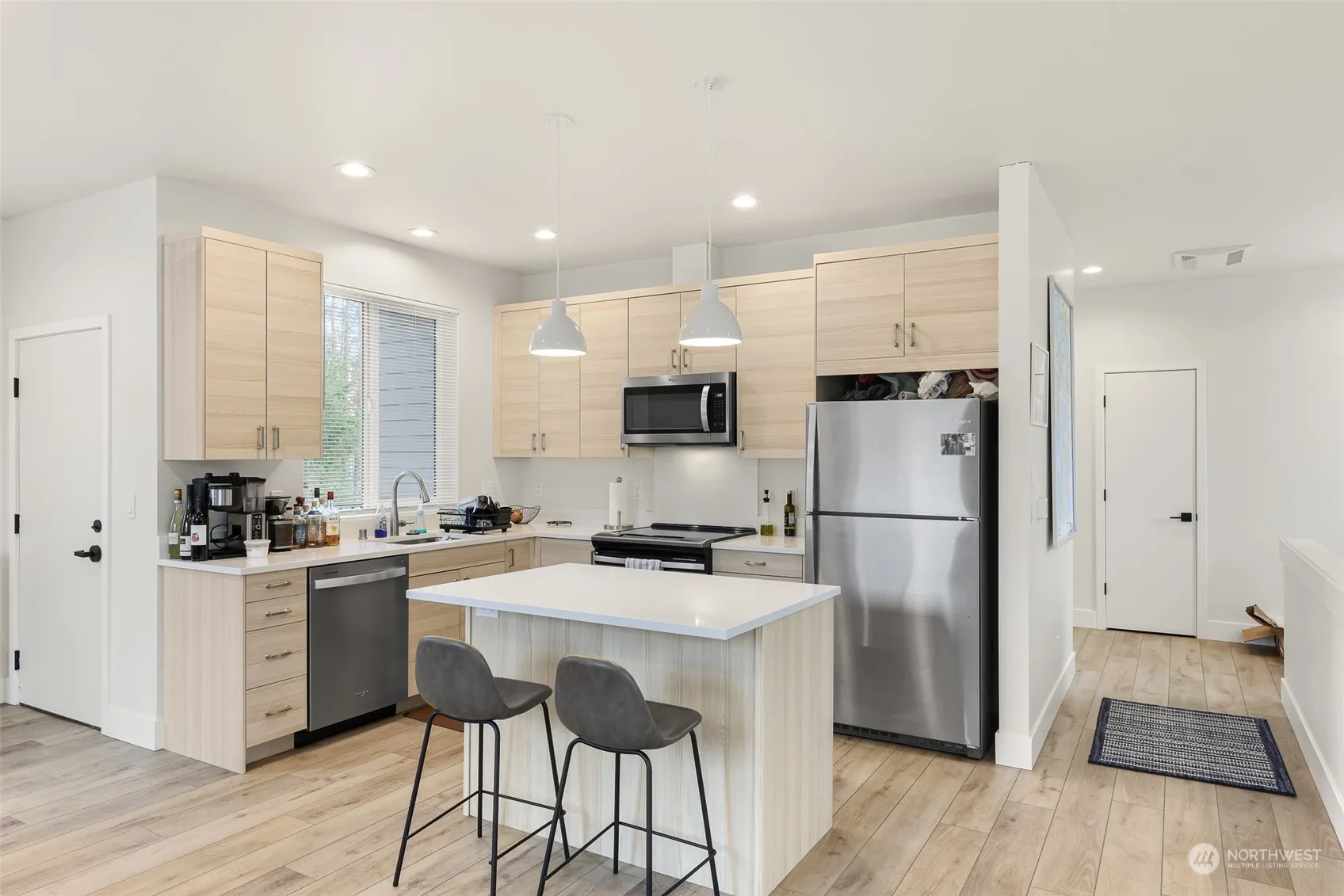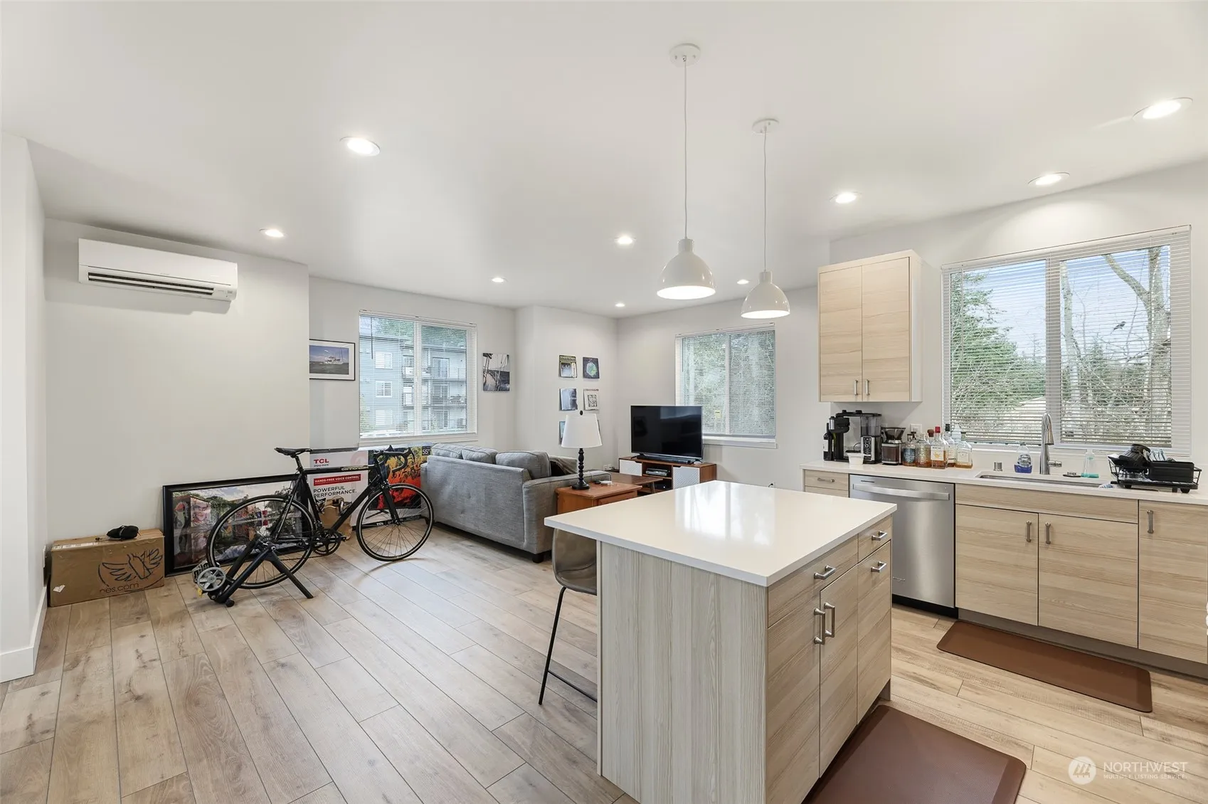 Situated in the vibrant core of Bellingham is a recently constructed modern duplex, completed in 2022. Within each meticulously crafted unit, discover 2 bedrooms and 1 bath featuring a double vanity. Enjoy personalized comfort with a mini split offering both heating and cooling options. Parking is hassle-free with one covered spot and an additional uncovered space for each unit, complemented by a convenient outside storage unit for your outdoor essentials. The kitchen is a chef’s dream, stainless steel appliances, quartz countertops, and cabinets that close with a gentle touch. Enhancing the overall allure, this chic duplex showcases Provenza vinyl floors. Welcome to contemporary living in the heart of Bellingham!