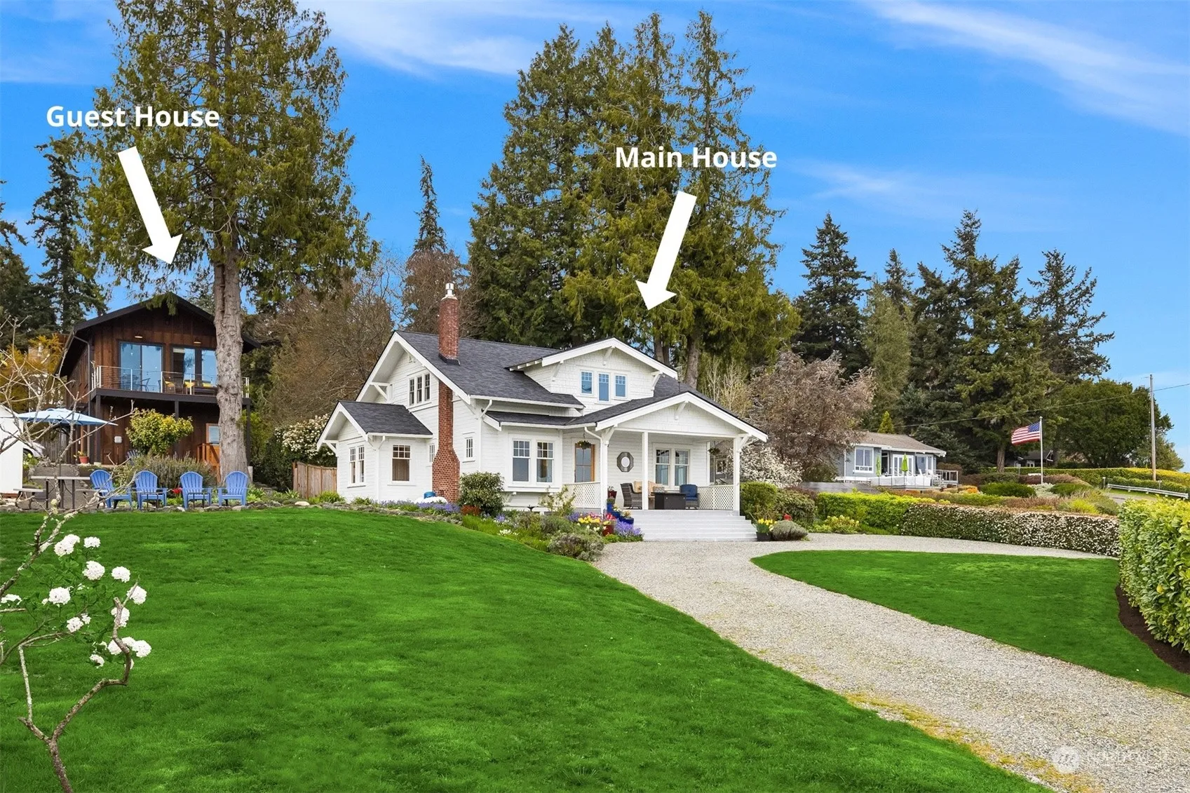 Where classic charm meets modern luxury, this rare-to-market 1927 waterfront home and its new contemporary companion have panoramic views of Seattle & Mt. Rainier! Discover not one, but two homes that define the essence of island living with total combined 0.61 ac. and 3,160 sq ft of living space. Well preserved main home boasts 3 bed, 2 bath plus a remodeled kitchen w/eat in space where you can gaze at Mt. Rainier. This sale also includes (10445 Manitou) on adjacent .27 ac parcel, 2022 built, 3-car garage and spacious 1,160 sqft. 2 bed, 1 bath above. This additional living space is ideal for guests or as a rental income opp. Enjoy one of Bainbridge Island’s most popular shorelines at your doorsteps with 144.8 ft of combined waterfront.