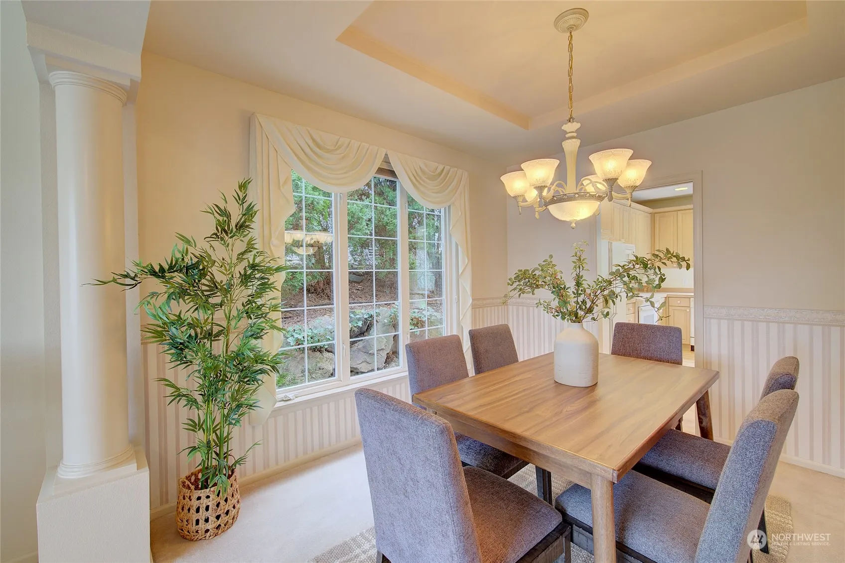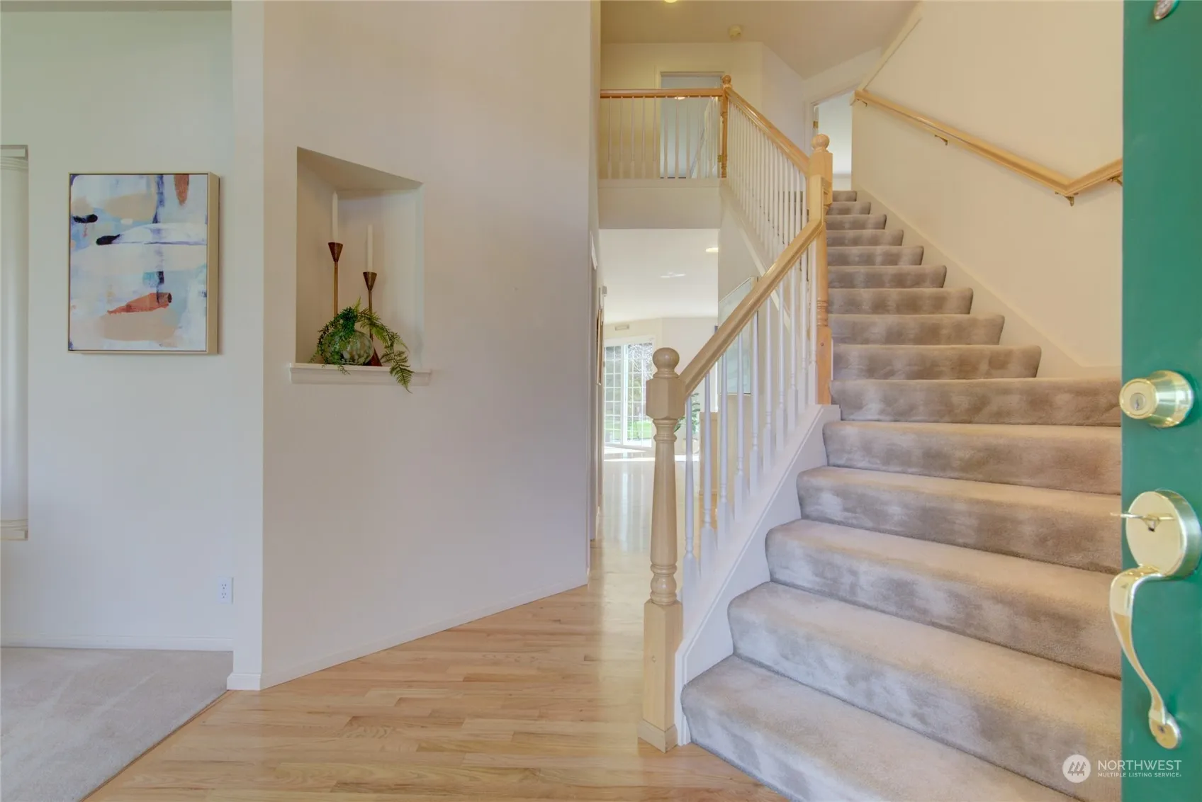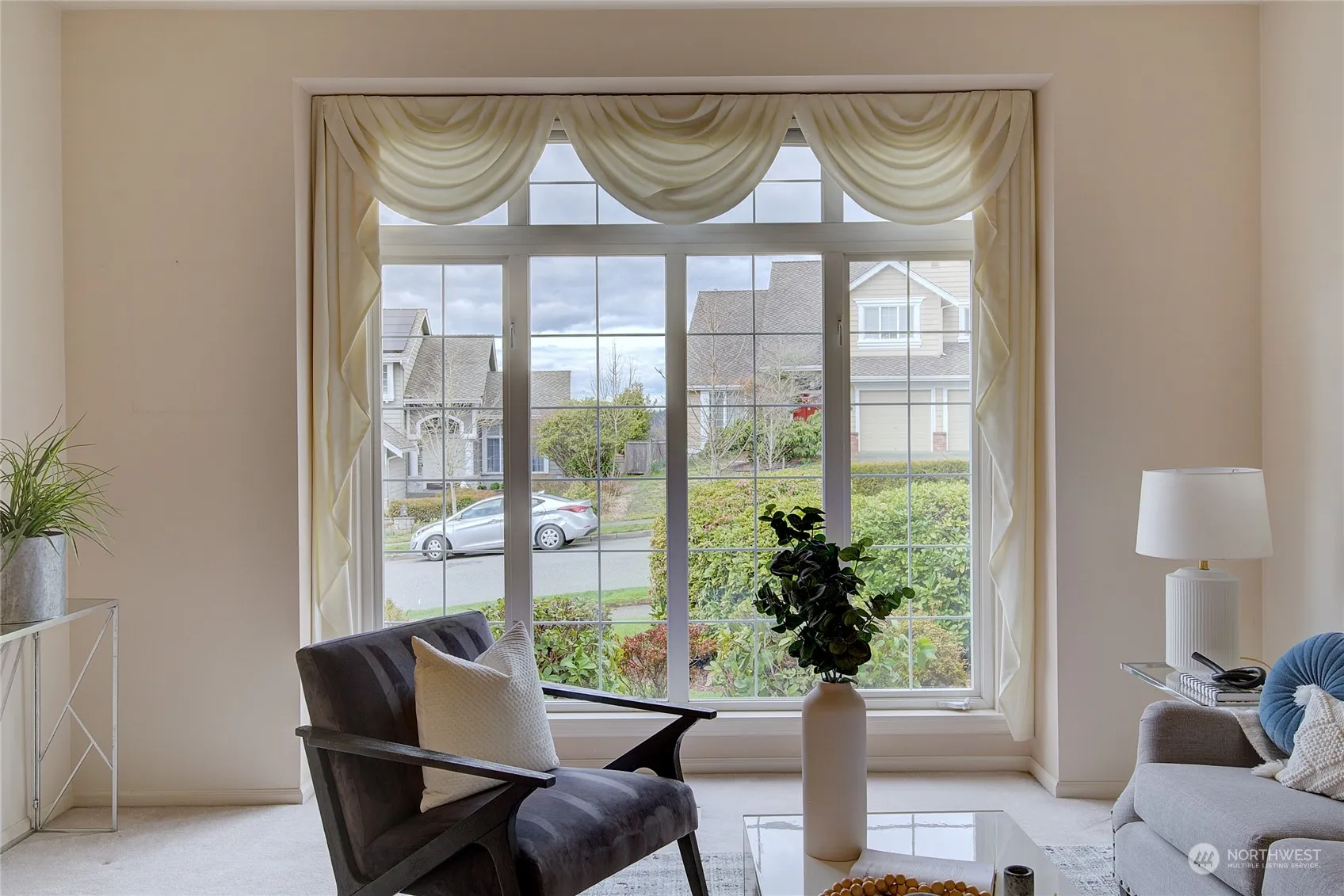 Desirable REDHAWK Community! This timeless 2-story home was designed by JOHN BUCHAN. Enjoy a private, partially fenced back yard, backing up to a greenbelt area. Beautifully landscaped, with pond. The main patio is perfect for a BBQ! NEW COMPOSITE ROOF, installed 2023, rated 50 yr, FRESHLY PAINTED exterior 2023 and NEW FURNACE 2024! A spacious entry leads to a lovely formal living room w/ coved ceiling, and dining room. Large eat in kitchen adjacent to family room w/gas fireplace. Upstairs, there are 3 great sized bedrooms and a large primary bedroom w/ensuite bathroom and walk in closet! Beautiful territorial view from the front yard, close to amenities, great access to I-405 and desirable Northshore school district!