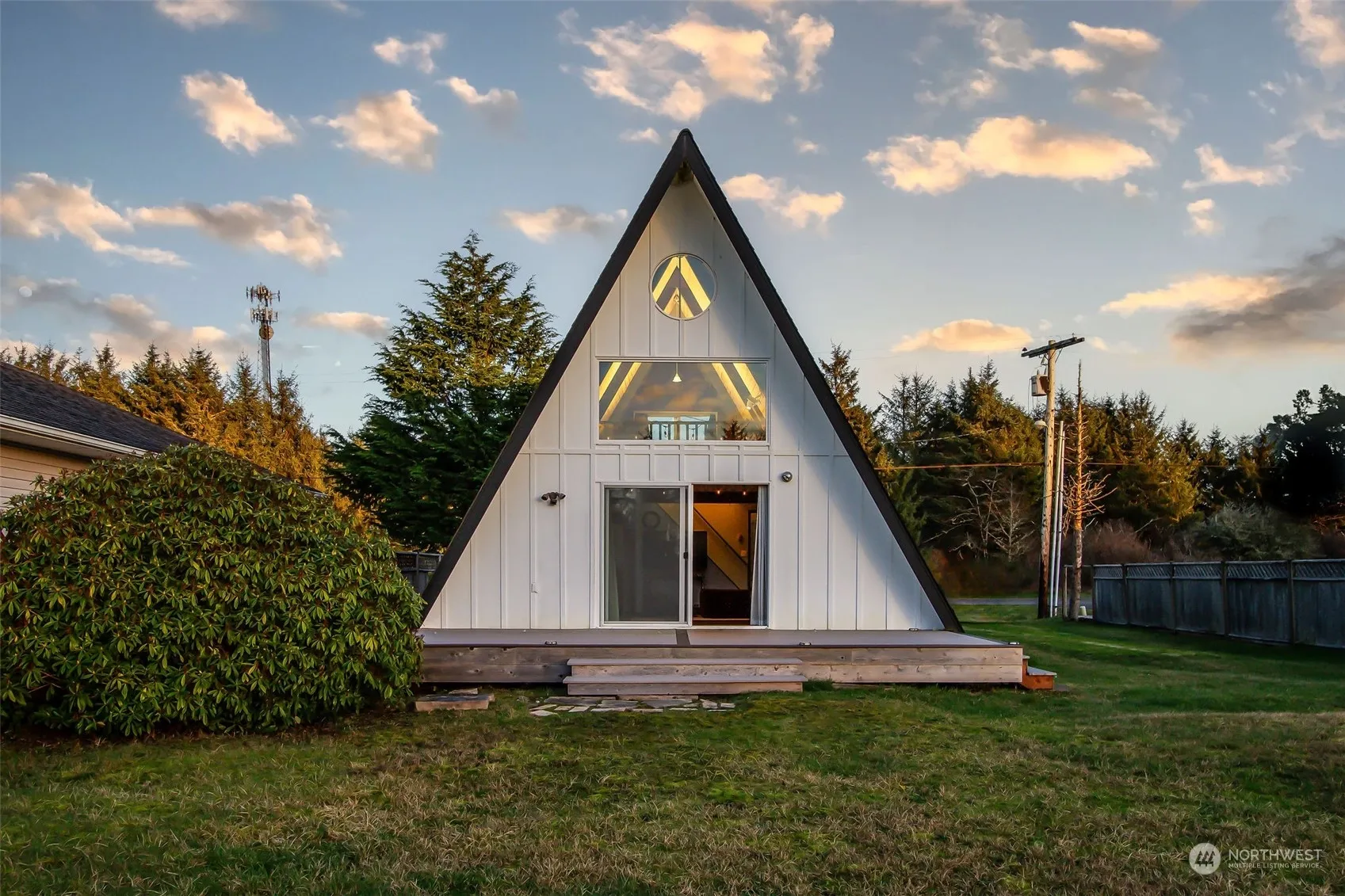 Ocean Shores Vacations any time you want! Are you looking for the ultimate getaway and waterfront property? This beautiful A-Frame cabin is turnkey and ready for you to make it yours! Built in 1963, but updated through the years, this cabin has a large kitchen, full bath, large living room, and a loft with two sleeping areas. To make it even more turnkey; this cabin comes completely furnished with large couches, two queen beds, fully furnished kitchen and more! Located on a large lot with firepit and your own personal dock on the Grand Canal! Kayak launcher is attached to dock! Ocean Shores community has three pools, tennis courts, community center with games and more. The beach is just around the corner. Hurry before summer!