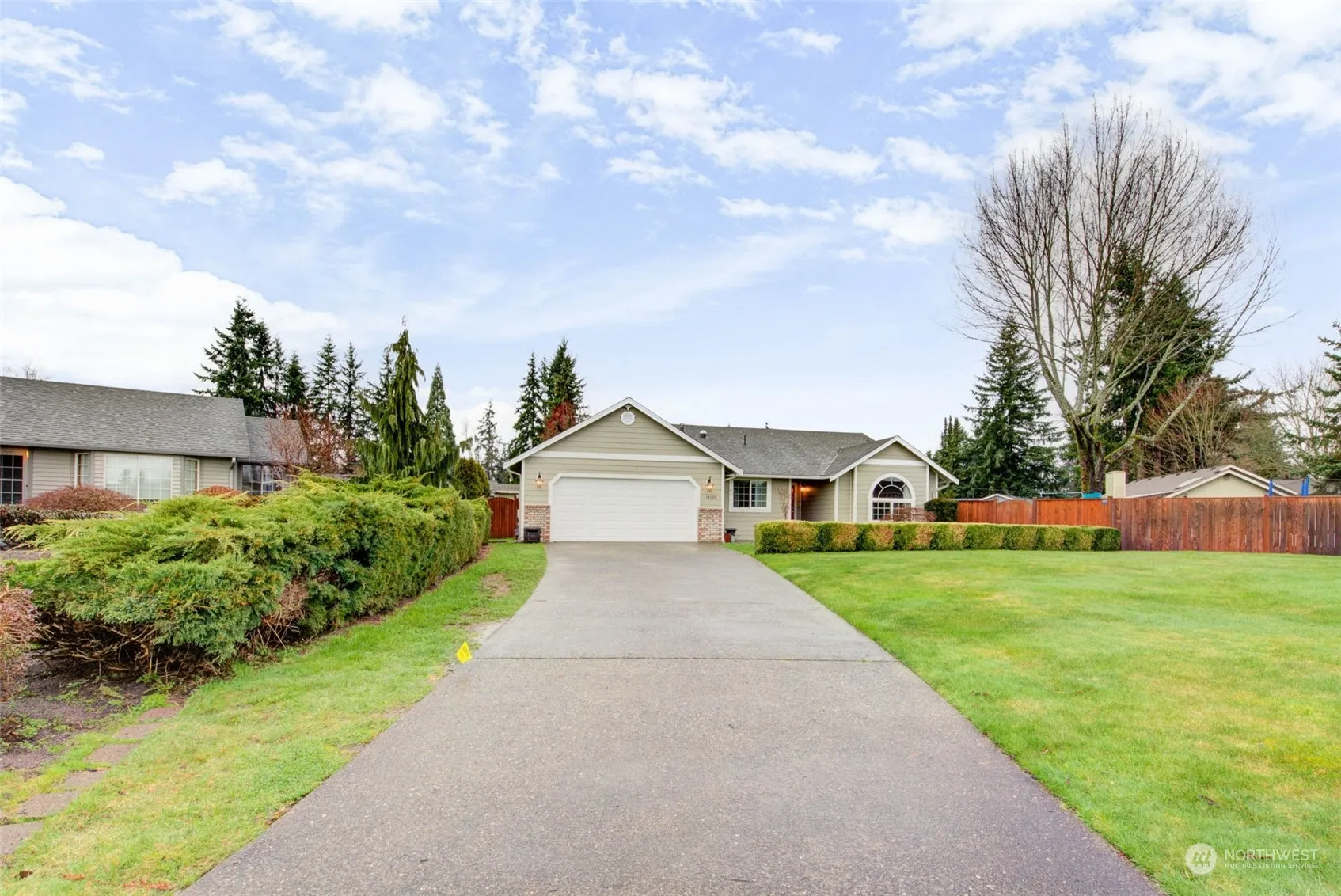 This charming rambler, Boasting 1417sqft of pure comfort, 3 bedrooms, 2 baths, and an enticing bonus room/family area. Generous 9,583 sqft, the expansive backyard w/ its large patio and thrilling zip line, promising moments of relaxation and excitement. Step inside to discover the triple-paned windows, ensuring serene tranquility and energy efficiency throughout. The kitchen welcomes culinary adventures with its double oven and spacious layout, perfect for entertaining guests. Freshly adorned with new siding in 2020 included A/C system, promising year-round comfort. No HOA fees, allowing for freedom and flexibility. Situated in a serene neighborhood, minutes from parks, athletic courts, shopping, and easy I-5 access. Welcome home.