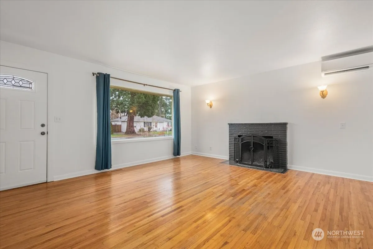 Perfect place to start! Well cared for hm w/ large picture window in living room that also features a charming brick woodburning fireplace, and hardwood flooring! The kitchen features white cabinetry w/ all appliances included & tile flooring that opens to the dining area w/ slider out to a covered patio to enjoy the wonderful backyard that will burst with color this spring and summer. Bedrooms have hardwood flooring. Beautiful apple tree in backyd and walnut tree in front yd! Home is freshly painted inside and updated w/ an energy efficient ductless heating & cooling system + wall heaters. Fenced backyd w/ double gates on one side, single gate on opposite side.Nearby hospital / emergency services, shopping, dining, freeway access and PDX.
