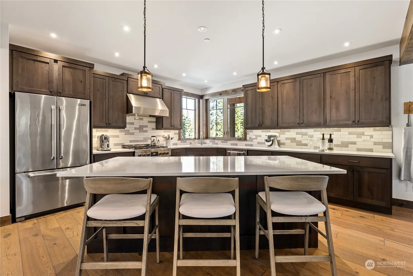 Above the 14th hole on Prospector golf course in Miner’s Camp in Suncadia, this elegantly UPGRADED home has it all! Next to UNBUILDABLE OPEN SPACE! Heated balcony reveals mountain and GOLF COURSE VIEWS, elk and deer herds, and more. Main level’s open floor plan connects the dining room, kitchen with a large island and superior appliances, and vaulted ceilings in the living room. Two primary ensuites, one on the top level with two additional bedrooms and one on main. Lower level has bunk and entertainment rooms. PRIVATE patio with fire pit and hot tub. Moments to the lodge, swim and fit, and Swiftwater Cellars. Dues cover snow removal, salt, sand up to garage door and walkways, landscaping + garbage. Great RENTAL income!