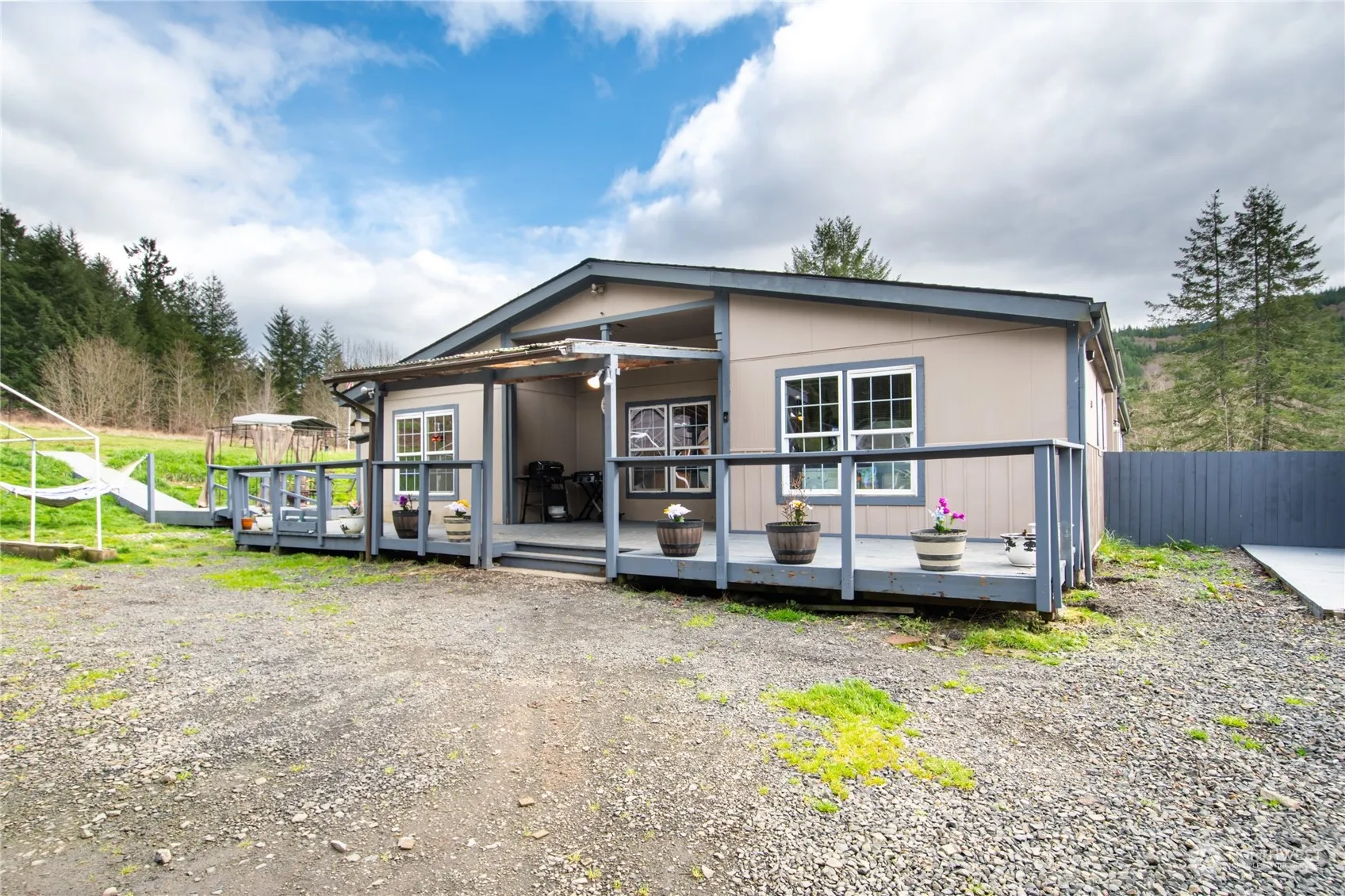 $10k seller credit towards closing costs or rate buy down**Nestled in the serene Rose Valley area this 2,432 square foot triple-wide mfg home offers a blend of comfort and nature on 5 sprawling, usable acres. Positioned close to Coweeman River, the property promises picturesque views of the surrounding mountains territorial landscapes. Boasting 3 spacious bedrooms + adtnl rooms for versatile use, The home features vaulted ceilings and openness throughout. Formal living room & a cozy family room, each space designed for gathering and entertaining. This is a unique opportunity to enjoy the peace & privacy of country living. New roof/Heat pump/ext paint- Priced to sell! Internet is US Cellular or Starlink. TV is Dish or Direct TV.