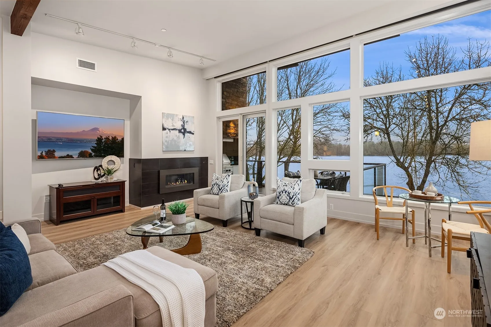 The premier penthouse at Bella Mira has come available. Experience the ultimate in watertfront living w/deeded moorage & 450’ of frontage. Discover a Modern NW Masterpiece w/ soaring ceilings & galleries of windows showcasing western views all the way down the lake. A dramatic Great Room awaits w/ a world class ktchn at center stage boasting gorgeous quartzite counters & a commercial grade viking range. Retreat to the grand size primary suite & relax by the fire while watching a soothing sunset. Fabulous guest suite + huge office as a 3rd bdrm option. Party on the patio w/ built-in BBQ & space to dine. Electric blinds, AC, central vac & a big laundry rm. Huge 2-car dream garage w/custom built-ins & loft storage. Inspection Report available.