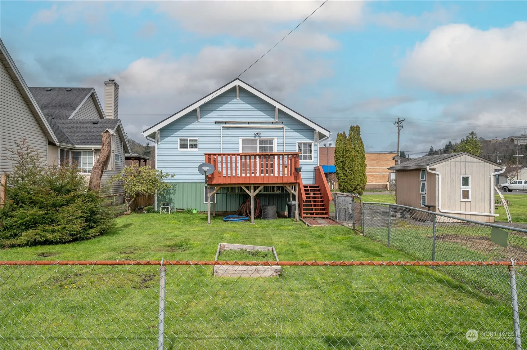 Experience the comfort of a well-maintained home set high with a full daylight basement. The home is light and bright, filled with natural daylight, creating a wonderful ambiance. Enjoy cozy evenings by the freestanding propane fireplace in the living room. Just off the living room, through the French doors, is an office/bonus room. The dining room leading to the kitchen is generously sized, offering space for gatherings. The deck offers a commanding view of the property & fenced back yard giving you another gathering space. The 1280 sq ft basement is perfect for storage and workshop, adding practicality to its appeal.The closets are spacious, giving more storage options. Also included is a nice size storage shed. Act now and make it yours.