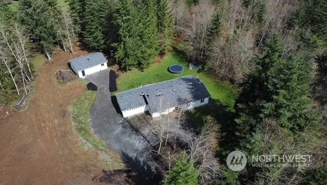 Ready for some peace and quiet? Look no further! Nestled within the trees this 1716 sq ft home offers 3 bedrooms, 2 baths, large great room with vaulted ceilings, wood stove for those chilly nights, primary bedroom with ensuite bathroom and walk-in closet. Outside the home features room for RV parking, attached two car garage, 24×30 detached shop with newly regraded driveway, fruit trees, and 4.47 acres. New roof, skylights, flooring, paint, countertops, backsplash, range, updated bathrooms, mini-split ductless heating and more, all within the past two years. Home also is on a individual well and septic and no CCRs. New Starlink Internet system to make working from home a breeze. Enjoy the privacy this home has to offer!