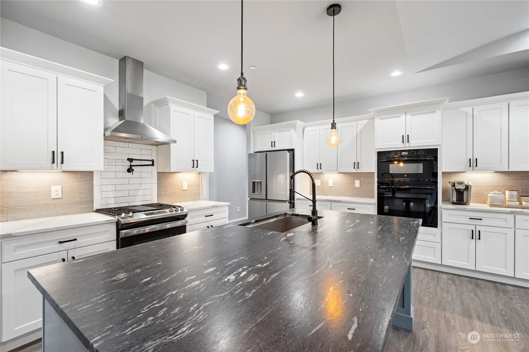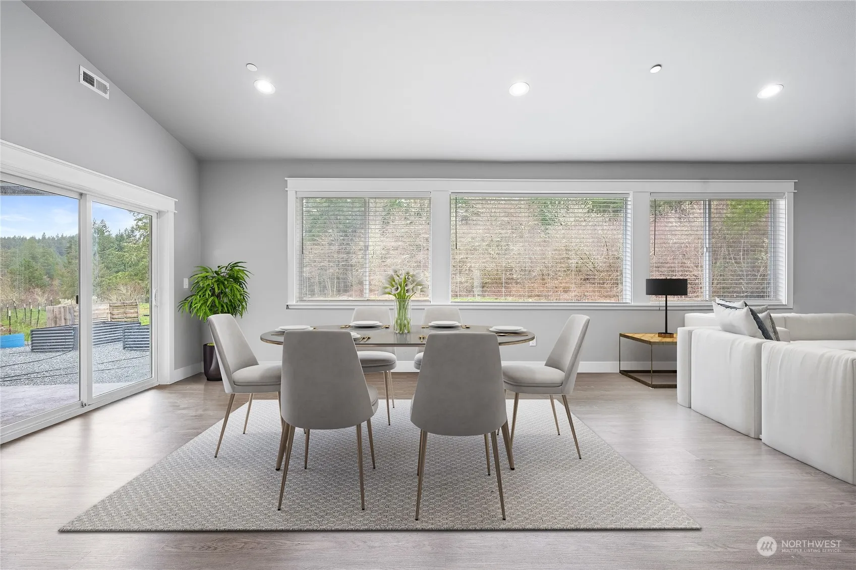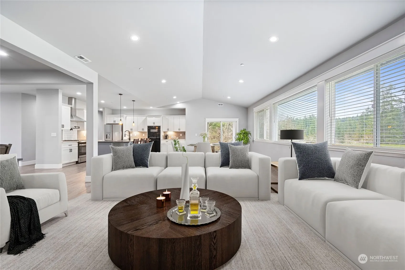 Nestled on 4.81 acres, this stunning 2757sf rambler boasts a captivating open kitchen that seamlessly flows into the living & dining areas. Split floorplan allows for the ultimate in privacy between spacious bedrooms. The primary features a spa-like bathroom with exquisite tile work, heated floors, a luxurious walk-in shower, & a jetted tub with heat. Further complemented by an incredible closet, it is the retreat every owner desires. A tall 3-car garage & 1000 gallon propane tank offer practicality, while a heat pump offers year-round comfort. Outside, enjoy a covered patio, fruit + nut trees, & direct access to Pack Forest’s scenic trails. Embrace luxury living fused with nature’s tranquility!