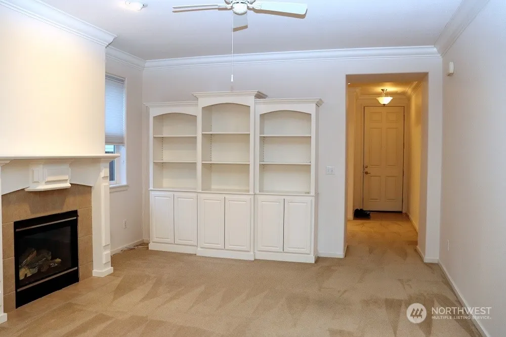 Impeccably maintained Winthrop Model, 1,468 sf, 2 bedroom, 2 bath home with lots of upgrades: beautiful crown moldings, cozy fireplace with decorative mantel, built-in book shelves, large walk-in closet, interior just professionally repainted, covered back porch for year round grilling, lots of storage, low maintenance backyard professionally landscaped, fully fenced with drip system, flooring/or buydown allowance, or whatever with acceptable offer. Walking distance to the Lodge. Welcome to the NW premier adult community. You won’t be disappointed.