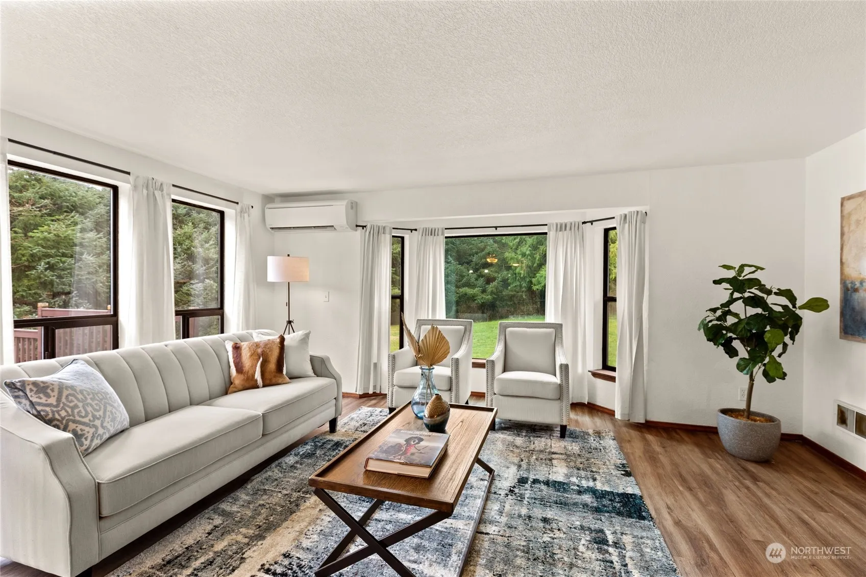 Discover a 2-acre peaceful Hobart setting nestled at the end of a private road with potential for equestrian enthusiasts. This charming single-story home showcases a well-designed floor plan, spacious entertainment deck, and pasture area complete with a powered 2-stall barn/tack room and ample space for trailer maneuvering. Inside, the large kitchen seamlessly opens to the dining room and living room, connected by elegant French doors to the entertainment deck. Additional highlights include a family room with a pellet stove, office space, a Primary Suite with private deck, plus two more ample bedrooms and full bath. New roof and mini-split air units were added in 2022. This Maple Valley gem offers a perfect blend of comfort and space!