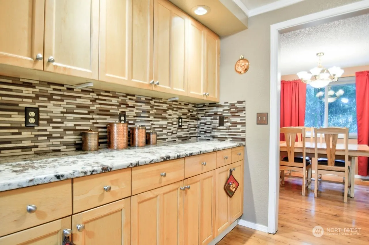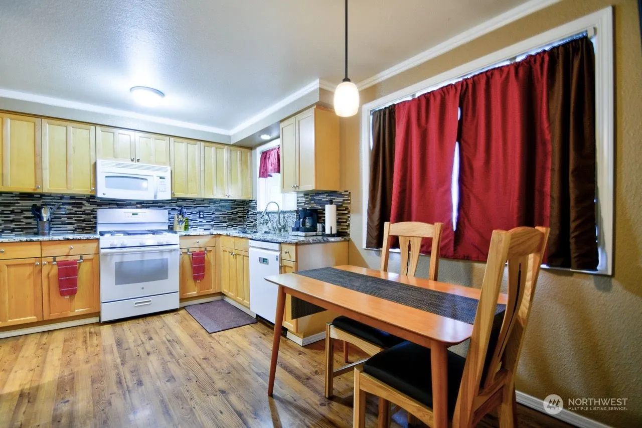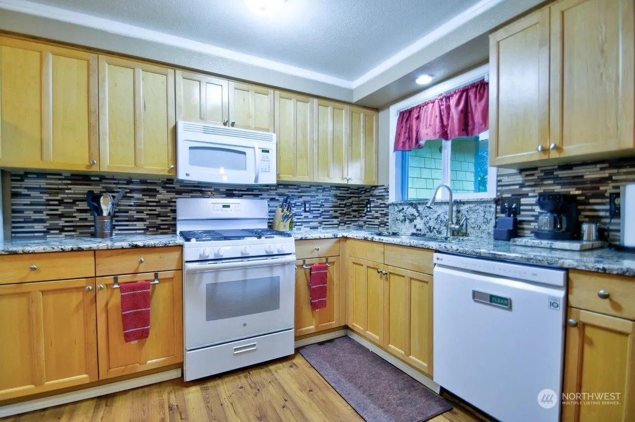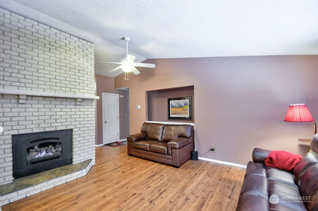 Welcome to this charming & move-in ready 2384 asf, 4 bdrm, 2.75 bath home on a quiet loop in sought after Tumwater neighborhood. Kitchen w/granite counters, gas range & eating space opens to DR & vaulted LR w/gas FP & brick surround. 3 bdrms & large fenced deck off main looks out over wooded property & community park w/playground & track. Family room w/new gas FP & brick surround downstairs w/spacious primary bedroom & bath w/new double sinks & hard surface counter. Large open room for W/D & lots of storage or other use. Covered & fenced patio off family room. Floor plan offers ADU possibilities. Home boasts new gas furnace & A/C, new water heater & all new plumbing. 14×20 shed w/power. Nice established landscape. Tumwater schools.