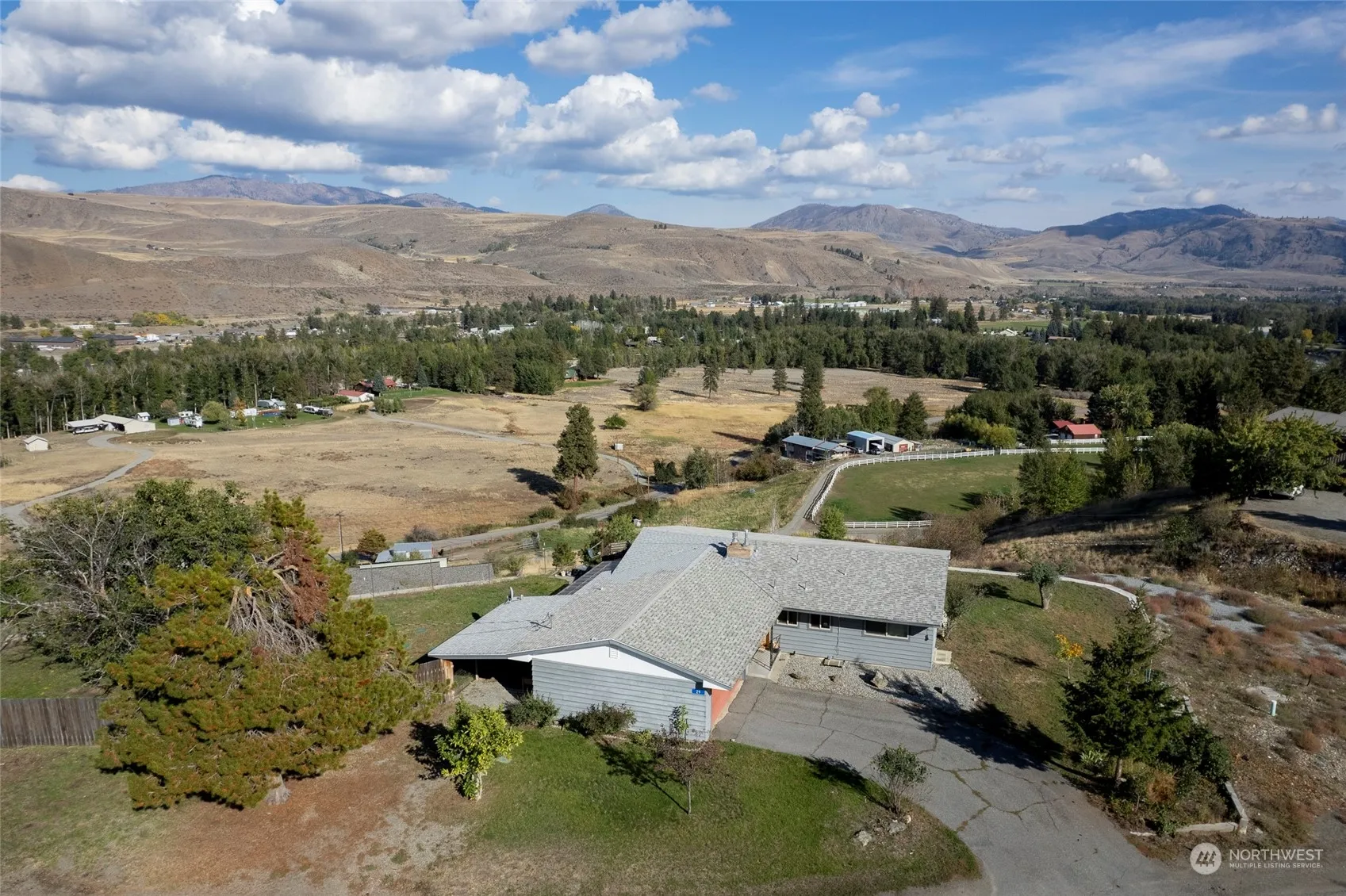 Beautiful spot just outside the town of Twisp. Absolutely amazing views from most every room! This 3bd, 2.5ba ranch home sits over a spacious finished basement with private entrance. Hardwood floors, gas fireplace, large kitchen and nice open floor plan on the 1448sqft main level. The finished basement includes an additional 1448sqft, a second kitchen, fireplace, water resistant laminate flooring, carpet, and large living area. Attached garage and carport. Lots of storage throughout. Partially fenced. Nice deck to enjoy the gorgeous views above the town of Twisp, a true bird’s eye view! Enjoy the fabulous mountain views of the Methow Valley from this prime location just outside of town.
