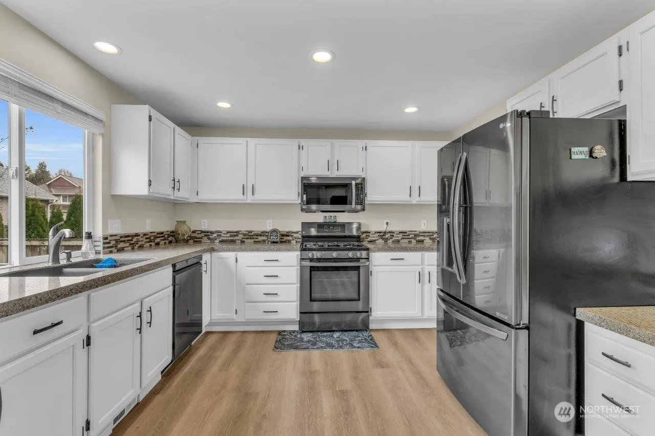 Charming 3 bedroom, 2.5 bathroom house boasts a spacious 2140sqft of living space with well designed floor plan. Large bonus room with skylights can be used as 4th bedroom, office, den or play space. Spacious primary bedroom with walk-in closet and 5 piece bath. Central AC installed few months ago. Laminate floor downstairs, carpet upstairs, tile floor in bathrooms and utility room, paint throughout, primary bathroom sinks and countertops have been updated few months ago. Nice size kitchen with granite counters. Large fully fenced backyard with composite deck, gazebo and hot tub! Close to school, shopping, and community college.