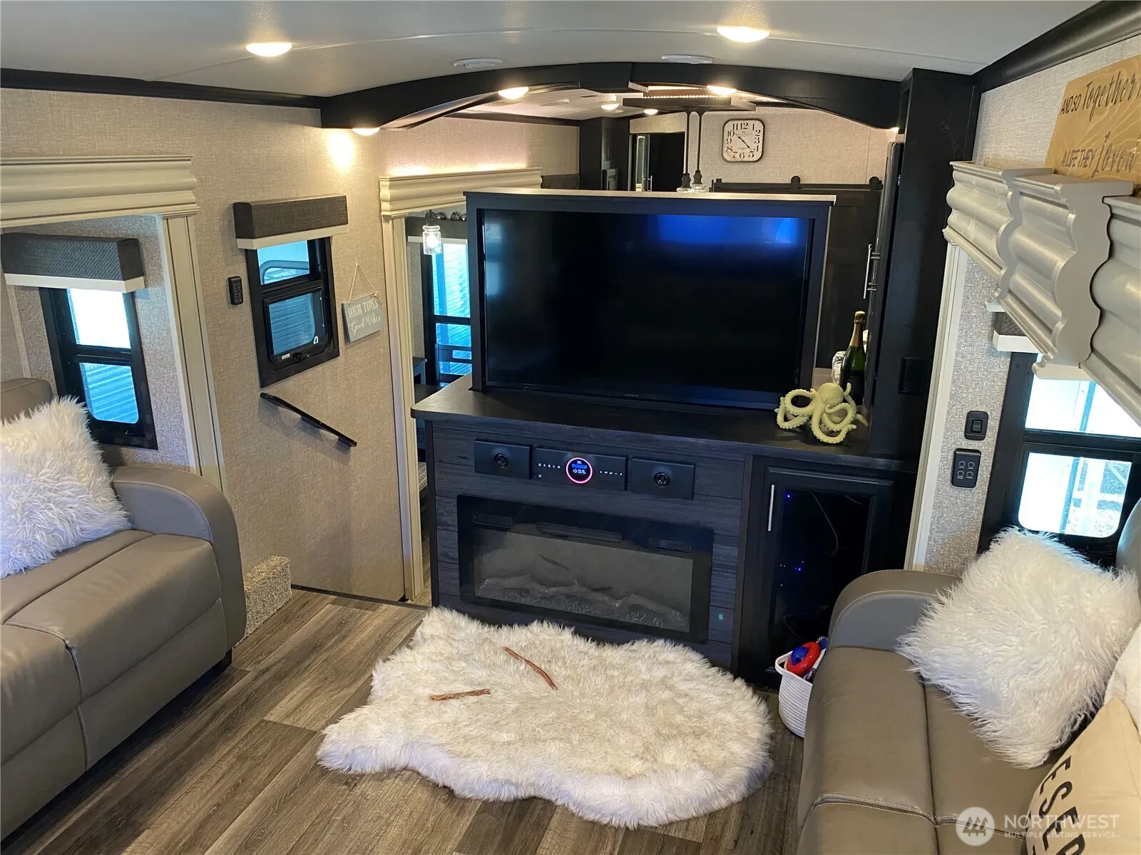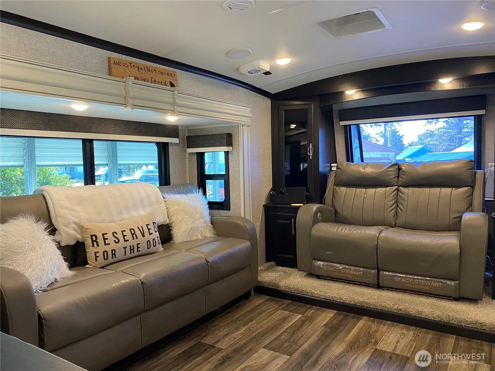 This property is located in the coveted Division 12 of Ocean Shores, where year-round RV camping is allowed. This property is a snow bird’s dream as it includes a 45′, 490 SF stunning, fully-loaded 2022 Jayco fifth-wheel trailer ready to move into. Includes two 15,000 BTU A/C units, vinyl flooring throughout, 1.5 bathrooms with 2 sinks in the master bathroom as well as a shower so big it includes a seat! Large roomy kitchen with an island. Handcrafted hardwood glazed doors, drawers and trim throughout. Property also includes an accessory unit with working shower, washer/dryer, sink and storage. Spacious decking on both sides all covered under large RV carport.